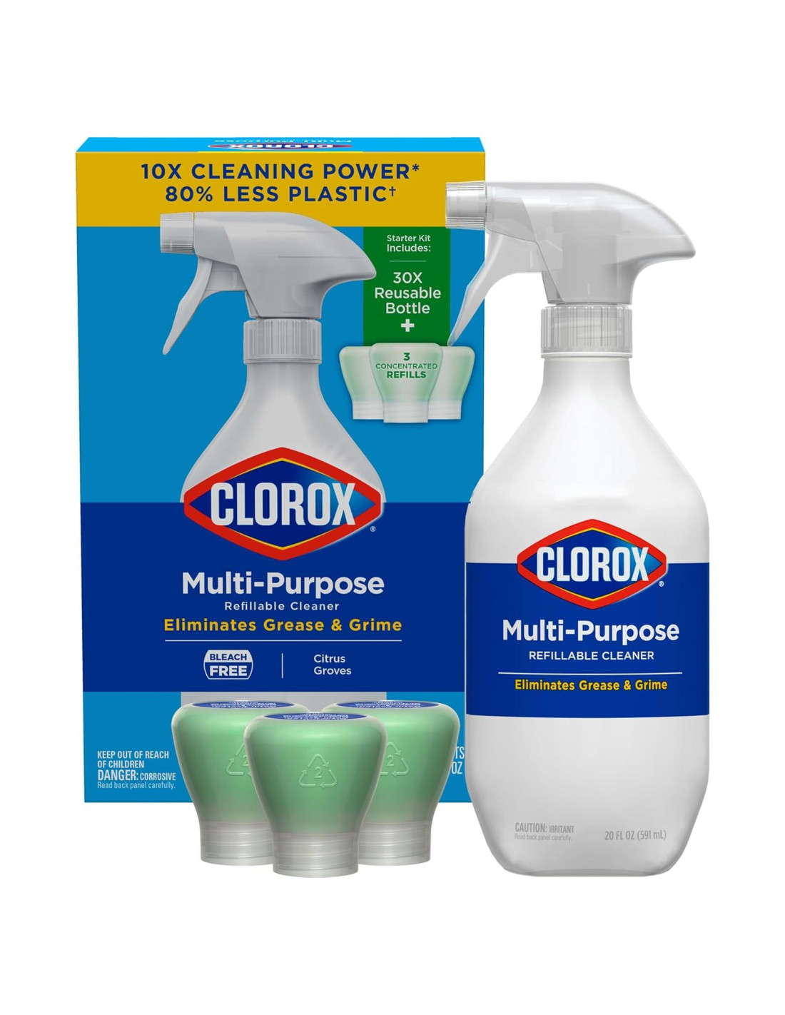 - SISTEMA DE LIMPIADOR CONCENTRADO: El Kit de Inicio del Limpiador Recargable Clorox incluye una botella de spray reutilizable y tres cápsulas de recarga concentradas
