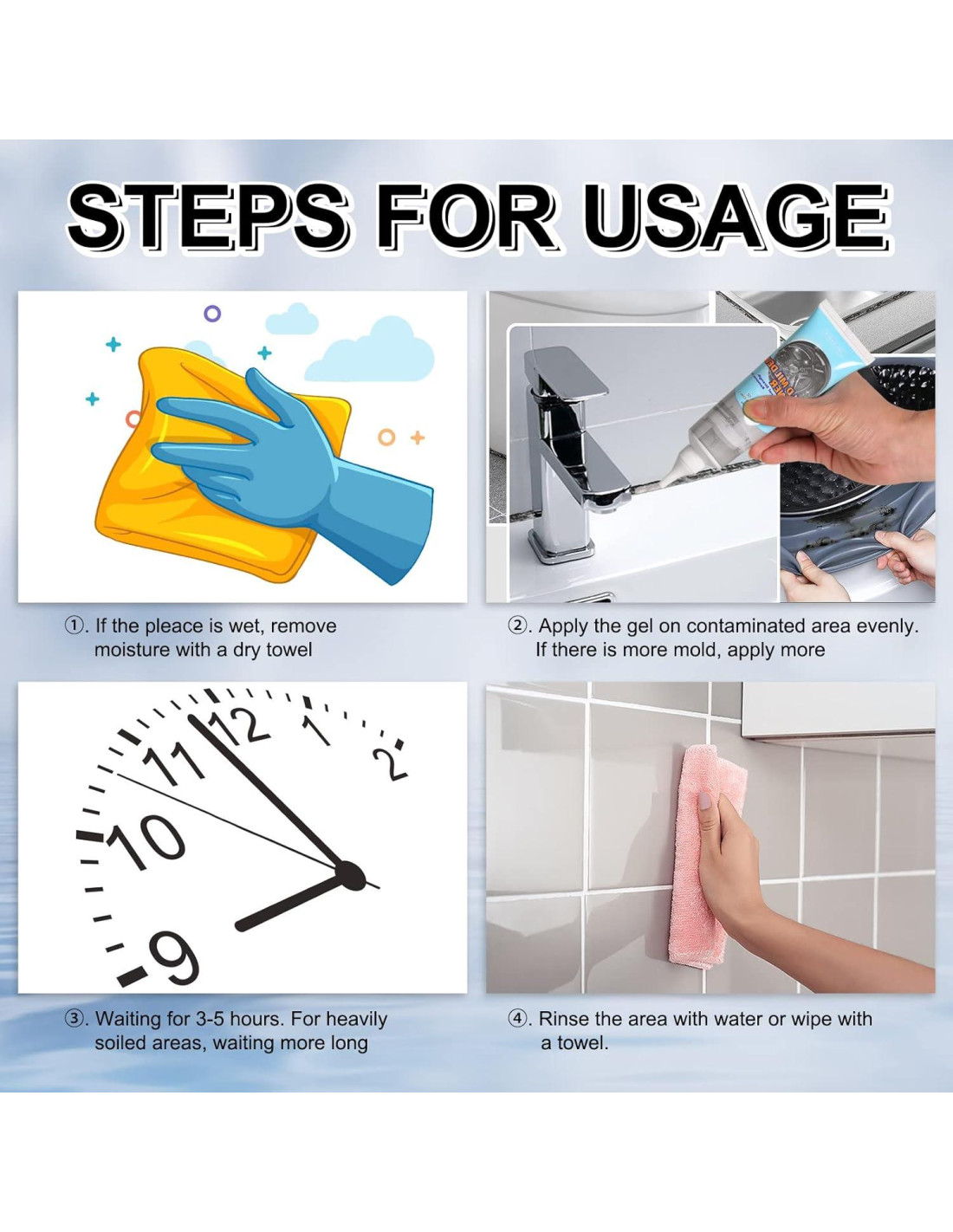 - Principio de Acción - Al eliminar la fuente de humedad, nuestro gel quitamanchas aplasta el mugre existente a medida que se seca, previniendo efectivamente el re-crecimiento.
