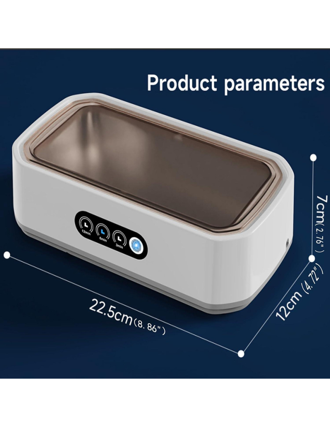 - 3 Modos de Temporización Convenientes: Diseñado para facilidad de uso, este limpiador ultrasónico cuenta con un simple interruptor táctil y tres opciones de temporizador preestablecidas (3min/6min/12min) para adaptarse a diversas necesidades de limpieza. Para diferentes niveles de manchas y productos, ya sea un refresco rápido o una limpieza profunda, esta máquina te cubre.