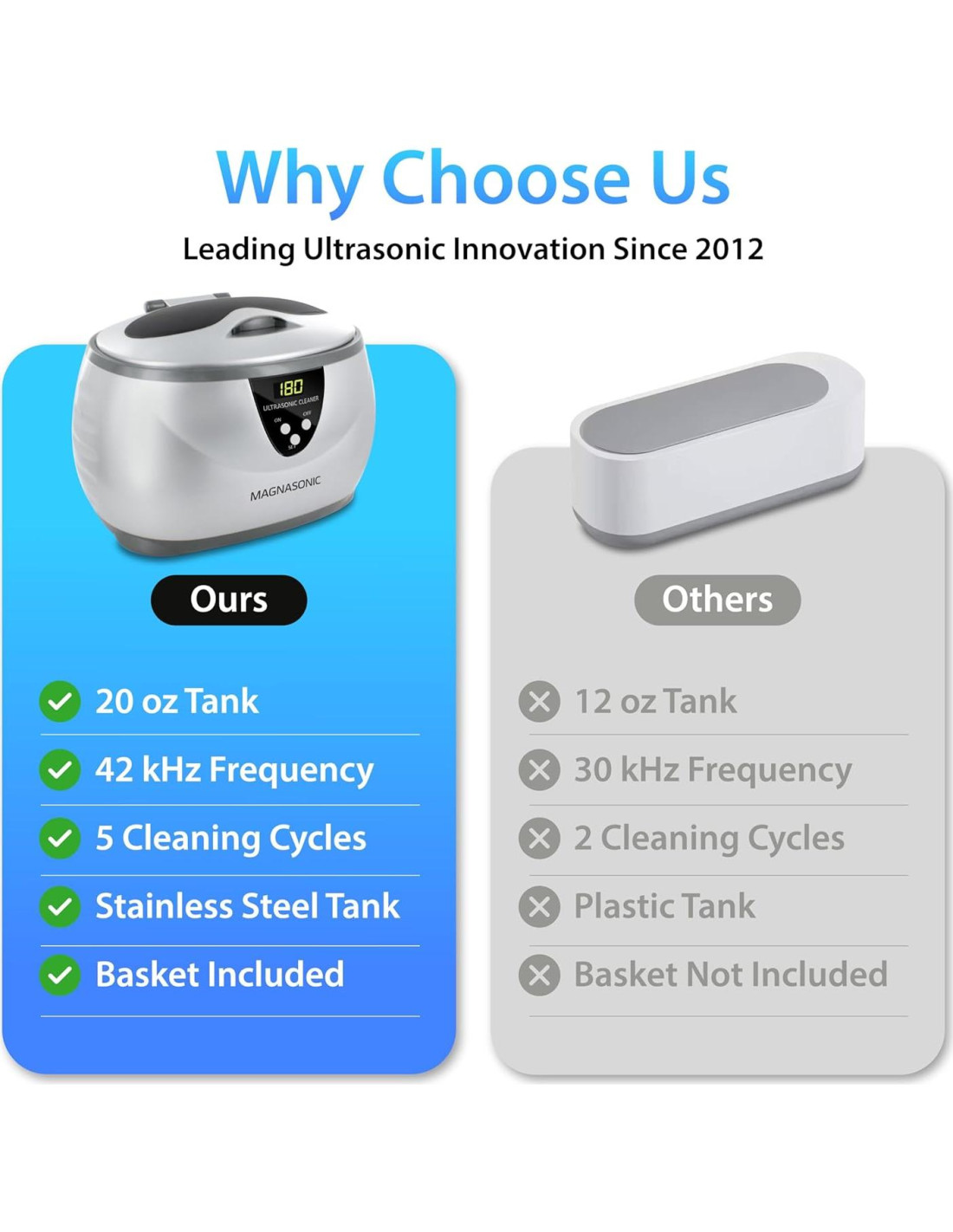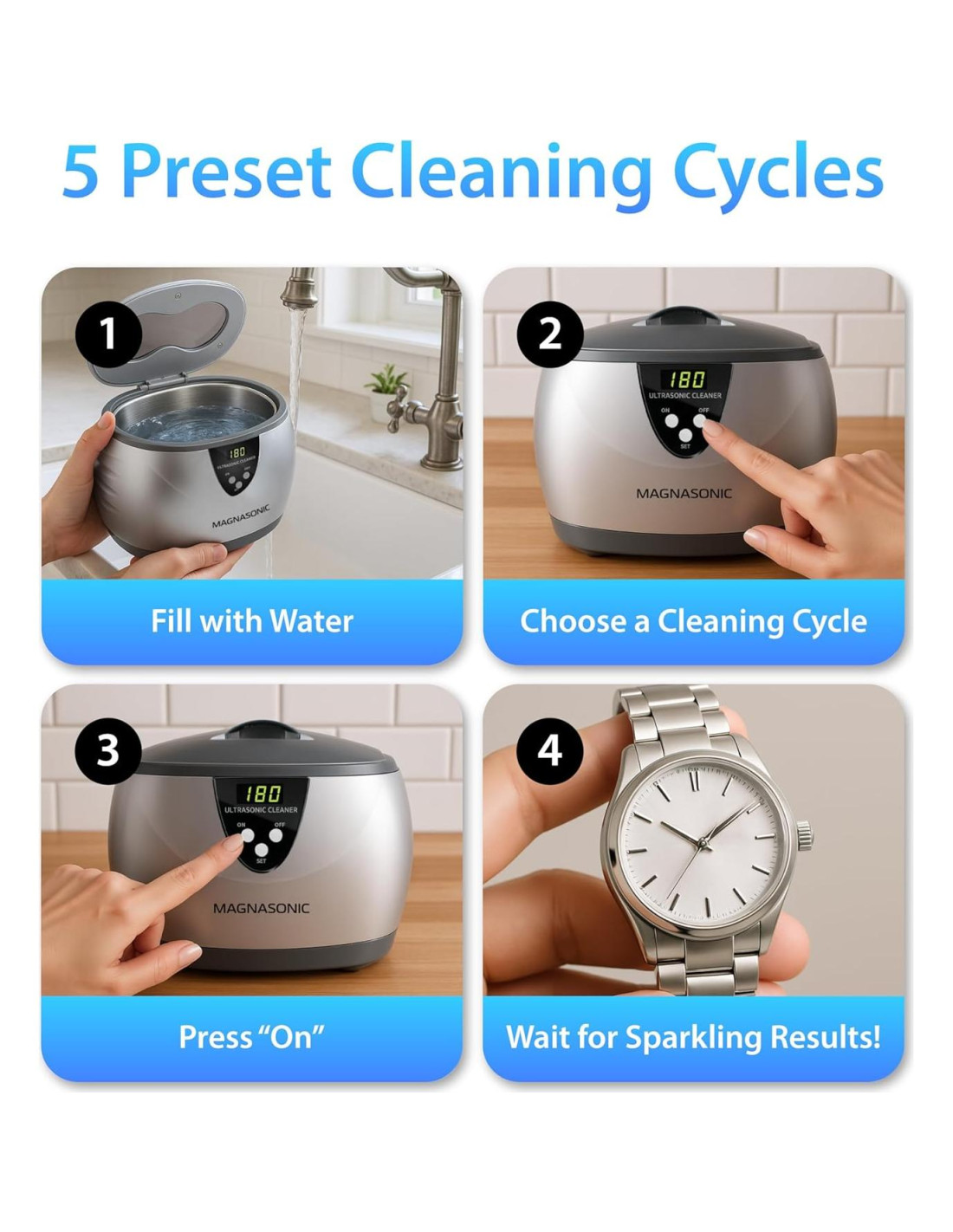 - 15+ AÑOS DE INNOVACIÓN ULTRASÓNICA: La máquina limpiadora sónica de joyería de Magnasonic ofrece resultados profesionales en casa. Con soporte en América del Norte a una llamada de distancia, es una máquina de limpieza ultrasónica en la que puedes confiar.