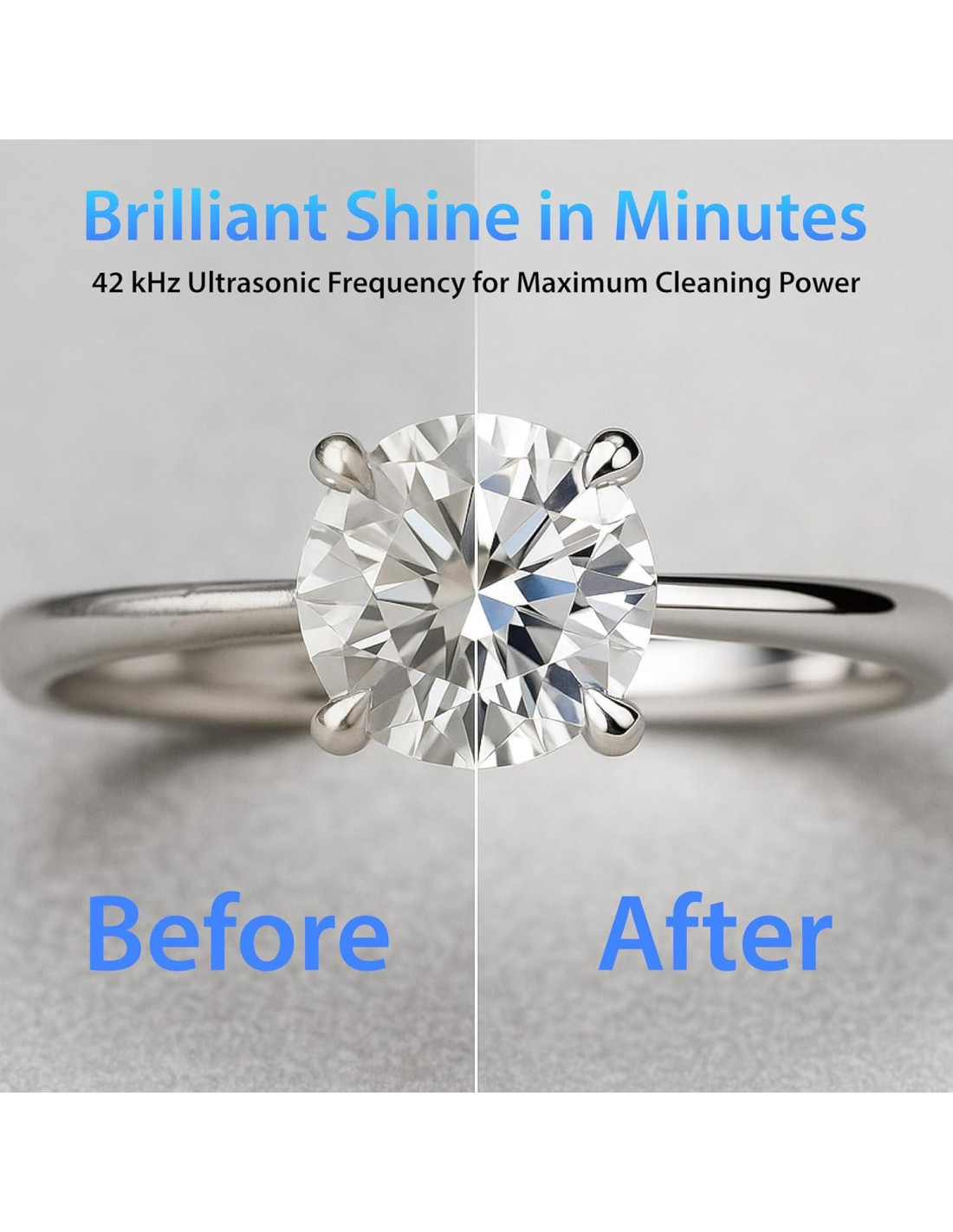 - LIMPIEZA DE CALIDAD PROFESIONAL CON SOLO PRESIONAR UN BOTÓN: Este limpiador ultrasónico de joyería maneja todo, desde anillos hasta dentaduras. Sin productos químicos agresivos, sin conjeturas. Solo agrega agua y presiona iniciar.