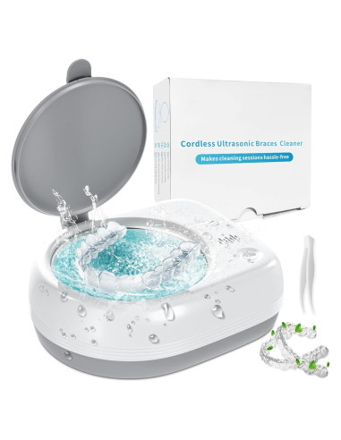 - Tecnología Ultrasónica Profesional Avanzada de 50,000Hz. Nuestro potente limpiador ultrasónico de retenedores utiliza la tecnología de ondas sonoras de alta frecuencia de 50,000Hz más confiable y avanzada para penetrar fácilmente en espacios y grietas de difícil acceso. Proporcionando cobertura de 360, limpia a fondo las superficies de los retenedores y micro-grietas, eliminando la suciedad para una higiene oral integral.