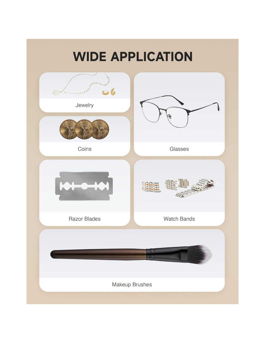 - Compacto y Portátil: Con un tamaño compacto de 22.6x10.9x6.6 cm., este limpiador de joyas se adapta fácilmente a espacios reducidos y se puede transportar fácilmente para limpiar donde sea necesario