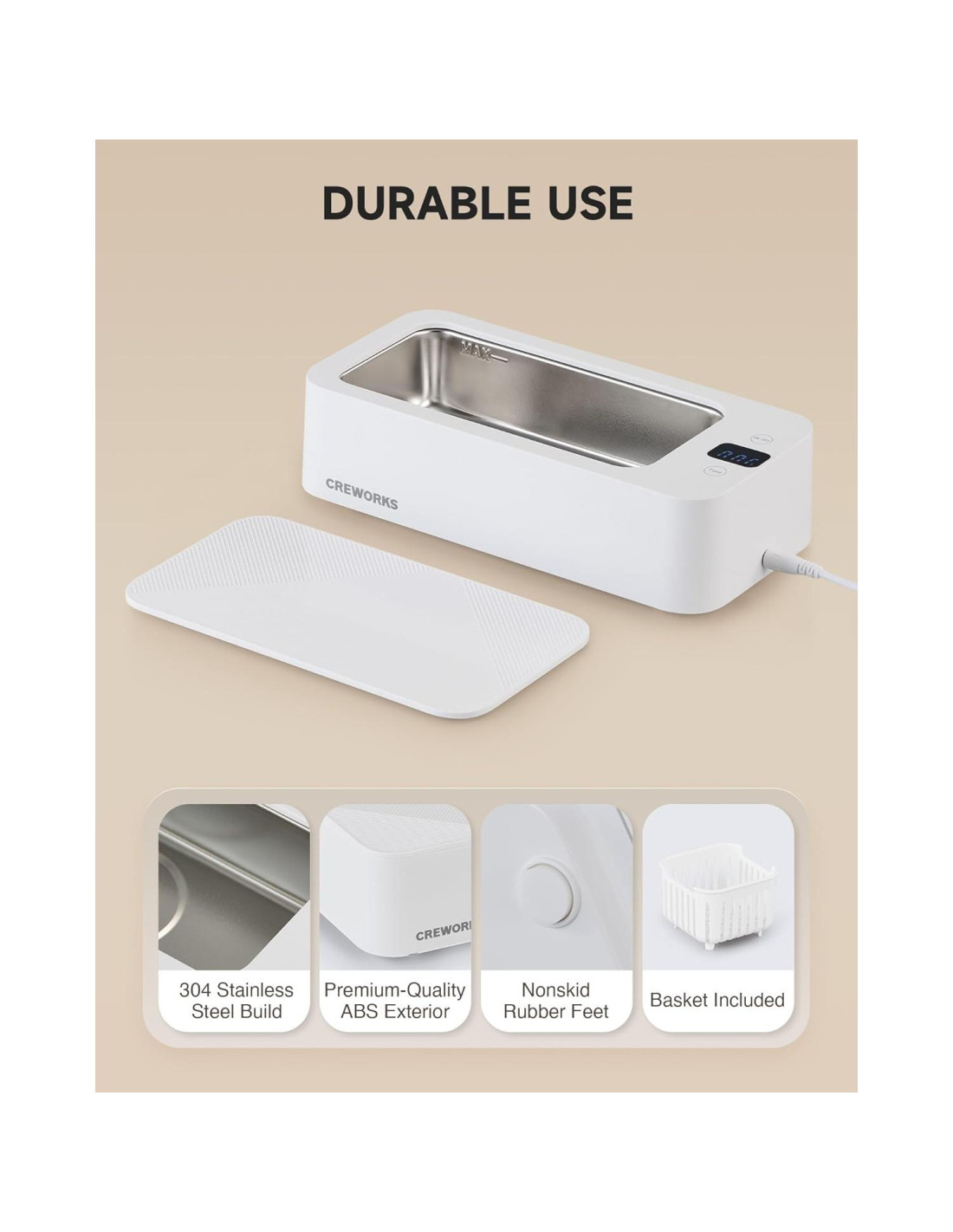 - Seguridad de Grado Alimenticio: Este limpiador de piezas sonico incluye un tanque de acero inoxidable 304 para limpieza segura para alimentos, pies de goma antideslizantes para mayor estabilidad y una canasta para sostener de manera segura los artículos durante la operación