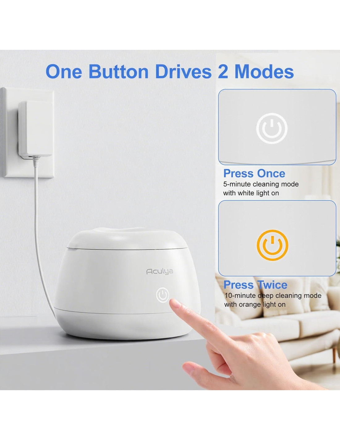 - LIMPIADOR DENTAL ULTRASÓNICO HECHO PARA UNA LIMPIEZA EFICAZ: ¡Solo presiona un botón! solución de limpieza definitiva con este limpiador dental ultrasónico, da a tus retenedores, dentaduras, protectores bucales, brackets, protectores nocturnos, cepillos de dientes y joyería un aspecto renovado sin esfuerzo.