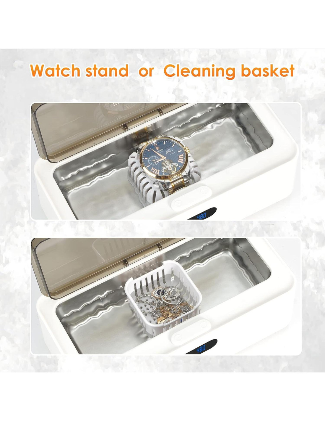 - Limpiador de Correas de Reloj Si experimentas alguna incomodidad o irritación en la piel al usar un reloj, significa que probablemente sea hora de limpiarlo. Nuestro limpiador ultrasónico puede limpiar todas las correas de reloj de acero inoxidable, viene con un soporte para reloj para que el cuerpo del reloj se mantenga fuera del agua. Esta es la mejor manera de limpiar tu reloj, y puede hacer que el reloj luzca como nuevo una vez más.