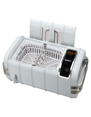 El Brillante HydroSonic HD es una máquina ultrasónica profesional de grado comercial con temporizador digital y calentador. Equipado con un transductor de pila ultrasónica de grado industrial y de gran tamaño que es más del doble de fuerte y más duradero en comparación con los transductores de oblea utilizados por algunos fabricantes de marca en sus modelos comerciales. El panel de control sólido con tecnología de detección táctil no tiene botones, por lo que es mejor para ser impermeable y más confiable. El calentador tiene 5 opciones entre 39 y 60 grados C. El ventilador de enfriamiento incorporado ayudará a mantener esta unidad funcionando durante mucho tiempo. También hay una manguera incorporada que facilita la eliminación del agua en el tanque. Incluido con esta unidad hay un vaso de acero inoxidable perforado con pequeños agujeros que lo hace perfecto para limpiar diamantes pequeños o artículos muy diminutos. Nuestros ultrasonidos especialmente diseñados dan a tus joyas un impulso de burbujas de limpieza que abordarán las áreas de difícil acceso y aflojarán cualquier suciedad que pueda haber quedado atrapada en el interior. Obtendrás resultados profesionales en joyas, gafas, relojes, dentaduras, cuchillas de afeitar, utensilios y mucho más. Esta unidad es perfecta para negocios, entornos comerciales y uso doméstico. También es un gran regalo para tus amigos y familiares que les gusta tener sus joyas brillando como nuevas. El Brillante HydroSonic HD es extremadamente fácil de operar. Simplemente llena el tanque con agua del grifo regular hasta que alcances la línea de llenado. Deja caer el artículo que deseas limpiar dentro de la canasta del tanque y enciende la unidad seleccionando la cantidad de tiempo que deseas que la unidad funcione (5, 10, 15, 20 y 25min) así como la temperatura que te gustaría (39 a 60 grados C). Los miles de pequeñas microburbujas penetrarán en áreas de difícil acceso aflojando la suciedad y la acumulación. Para una limpieza aún más profesional, utiliza la muestra de Concentrado de Limpieza Brilliant Optima99 que se incluye con cada unidad. Simplemente vierte una cucharada del concentrado en el tanque para darle a tus joyas una limpieza y brillo aún mejor. Puedes limpiar joyas, collares, pulseras, anillos, aretes, relojes (impermeables), monedas, gafas, cubiertos, diamantes, piedras preciosas, cuchillas de afeitar, peines, cepillos de dientes, dentaduras, piezas de máquinas y casi cualquier otra cosa que no se dañe con el agua. Ten en cuenta que, aunque el concentrado de limpieza no tiene amoníaco, sigue siendo un potente agente de limpieza y no debe usarse en piedras preciosas porosas o delicadas que pueden arruinarse fácilmente por la penetración de líquidos. Tamaño del tanque: 24.9 x 17.5 x 7.9 cm (Capacidad de 3L). Tamaño de la unidad: 43.2 x 25.4 x 22.9 cm. ¿Qué incluye? Limpiador Ultrasónico de Joyas, Canasta de Limpieza, Vaso de Acero Inoxidable Perforado con Soporte, Soporte con Ganchos, Manual de Instrucciones Detallado y muestra de Concentrado de Limpieza Brilliant Optima99.