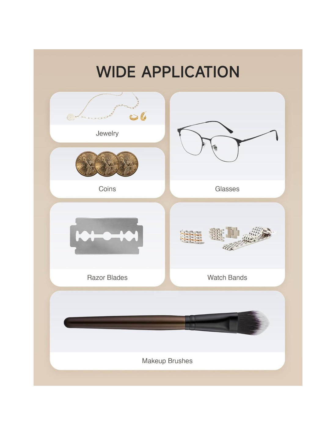 - Compacto y Portátil: Con un tamaño compacto de 8.7x3.5x2.9 in. (22.1x8.9x7.4 cm), este limpiador de joyas se adapta fácilmente a espacios reducidos y se puede transportar fácilmente para limpiar donde sea necesario