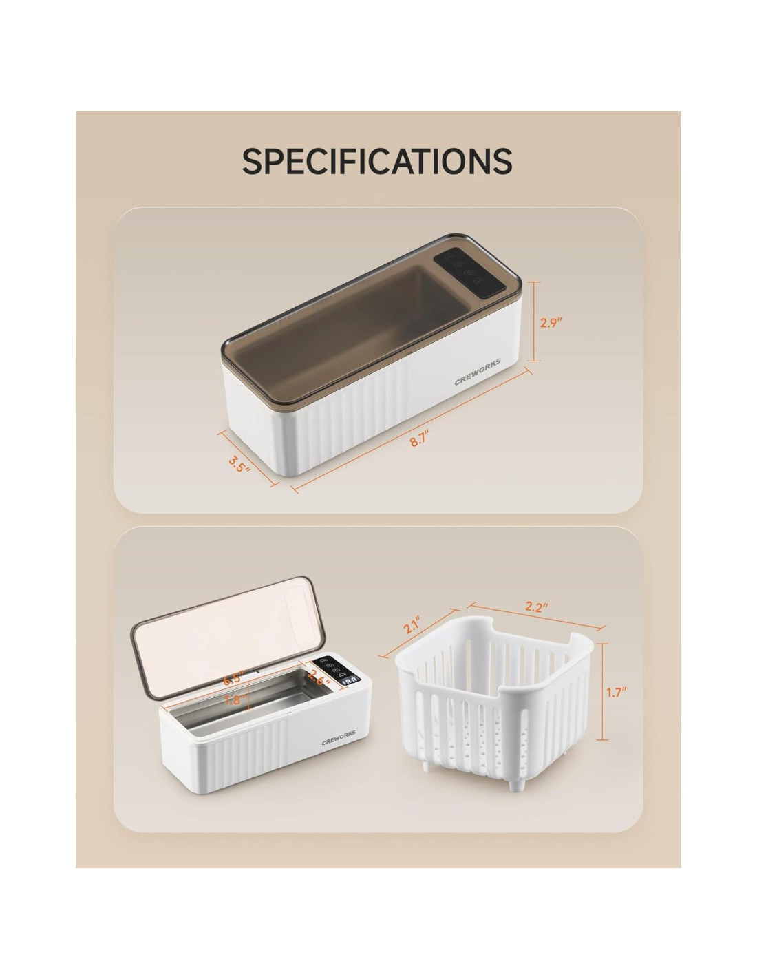 - Limpieza Ultrasónica Potente: Con un tanque de 15.2 oz. (450 ml) y una frecuencia ultrasónica de 45 kHz, esta máquina de limpieza ultrasónica Creworks elimina eficazmente manchas y acumulaciones de artículos delicados como joyas, gafas, monedas y microchips