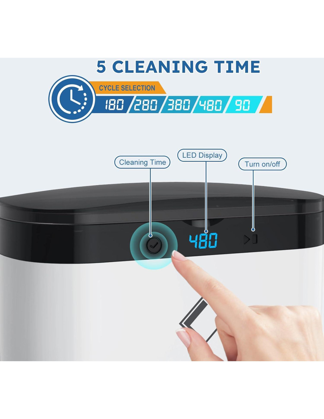 - 5 Ciclos de Limpieza Preestablecidos con Apagado Automático - Elija entre 90, 180, 280, 380 o 480 segundos para coincidir con el tamaño del artículo y el nivel de suciedad. Sin sobre-limpieza, sin preocupaciones.