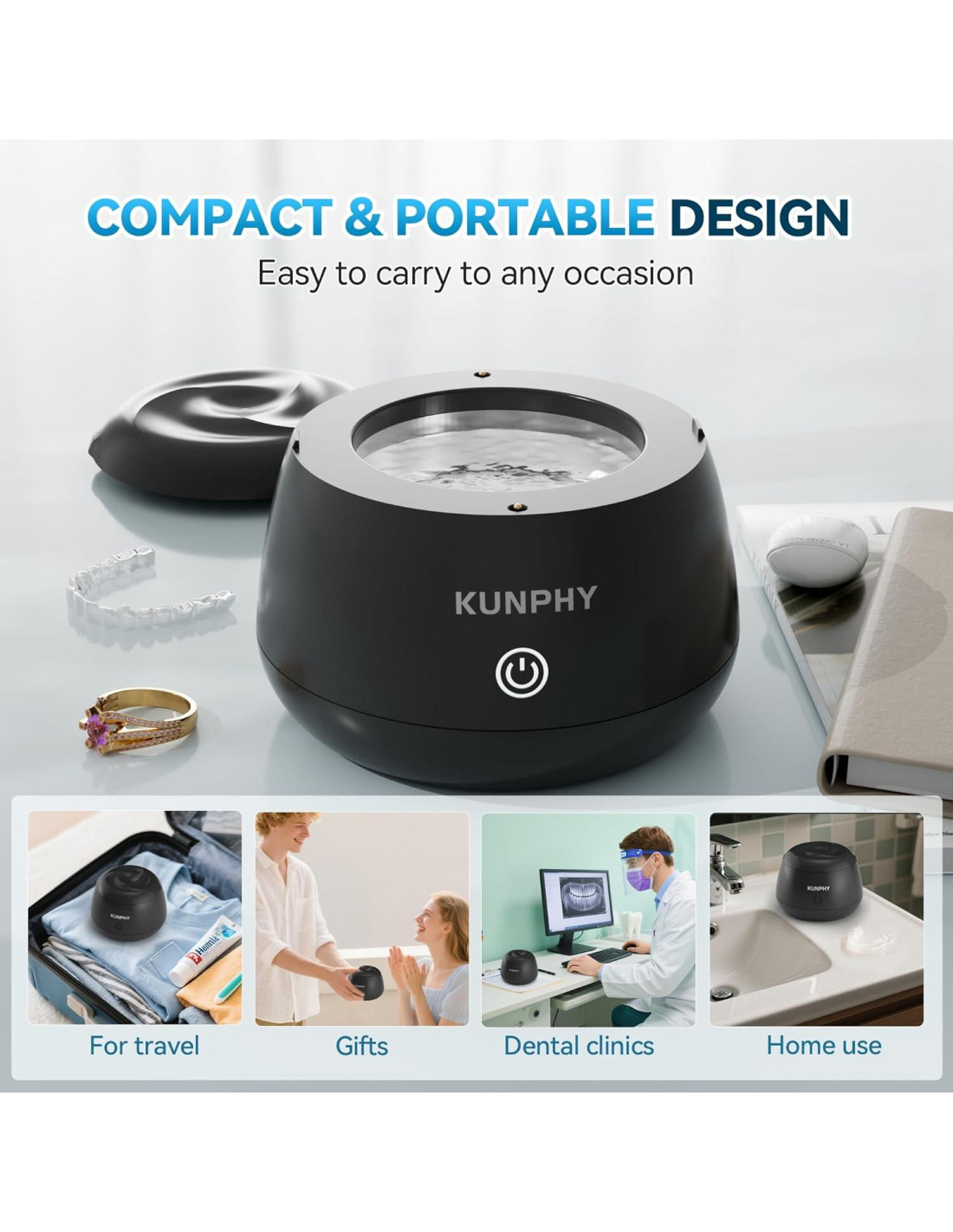 - Fácil de Usar: Con un clic, el limpiador de joyas activa la limpieza ultrasónica y el modo U-V, limpiando y refrescando profundamente los aparatos dentales y la joyería en solo 5 minutos, ideal para tus necesidades diarias