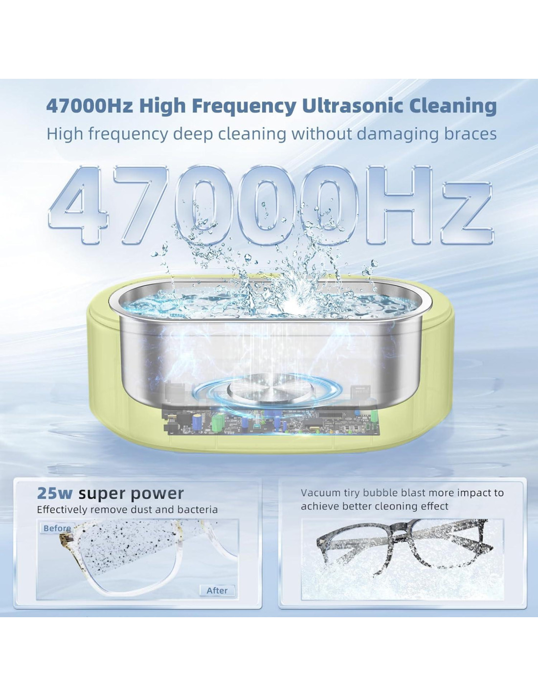 - Limpieza Profunda 360: El Limpiador Ultrasónico KRX para Retenedores utiliza ondas sonoras de alta frecuencia de 47,000Hz para eliminar efectivamente la suciedad y partículas de dentaduras, retenedores, frenos y más, asegurando una limpieza completa y profunda. (Se pueden lograr mejores resultados de limpieza con Tabletas de Limpieza para Retenedores)