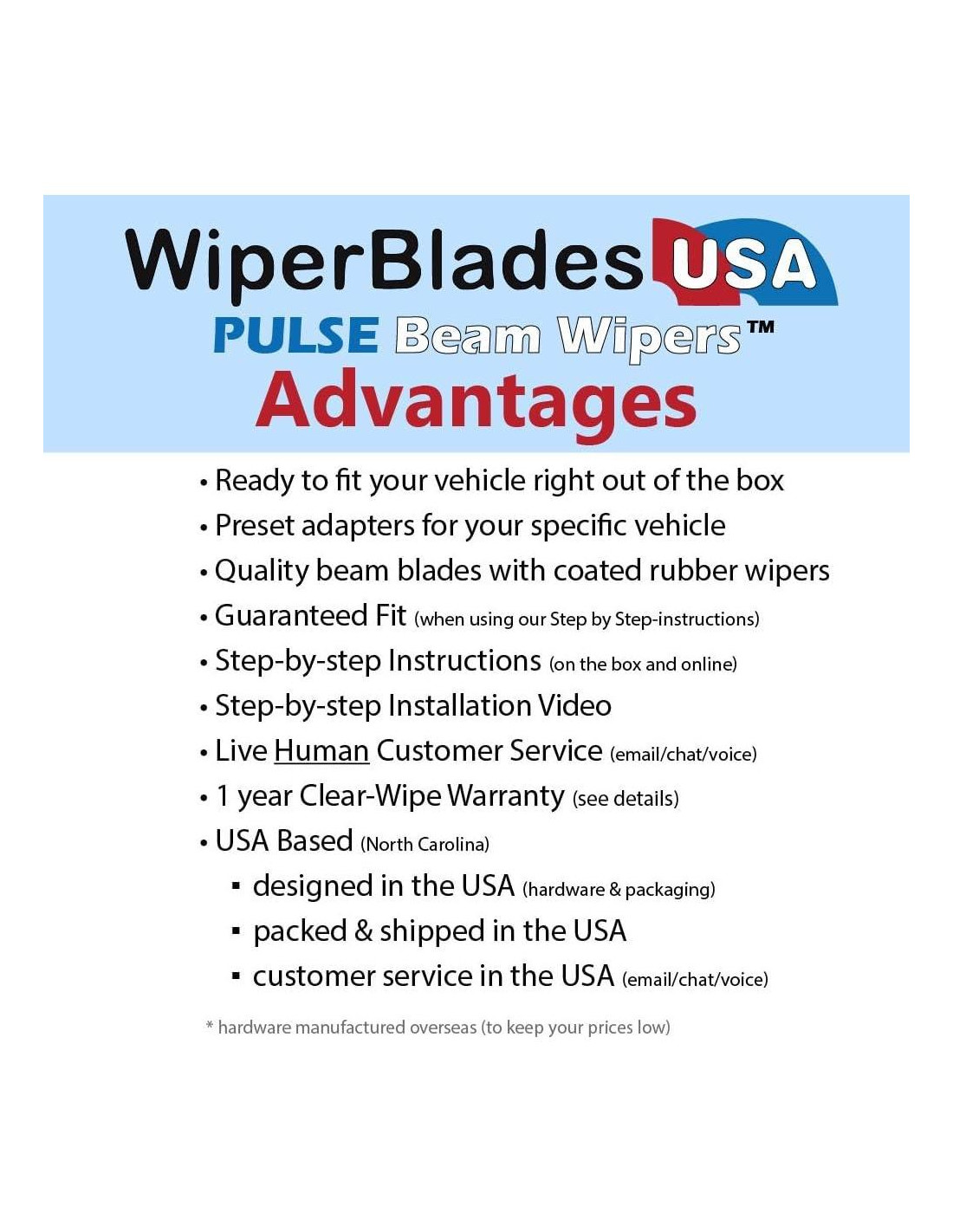 - Número de modelo del artículo: Limpiaparabrisas WiperBladesUSA Pulse 1yr Warranty
