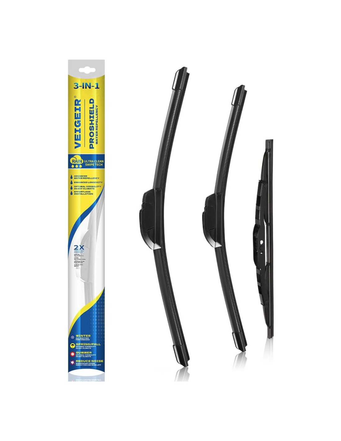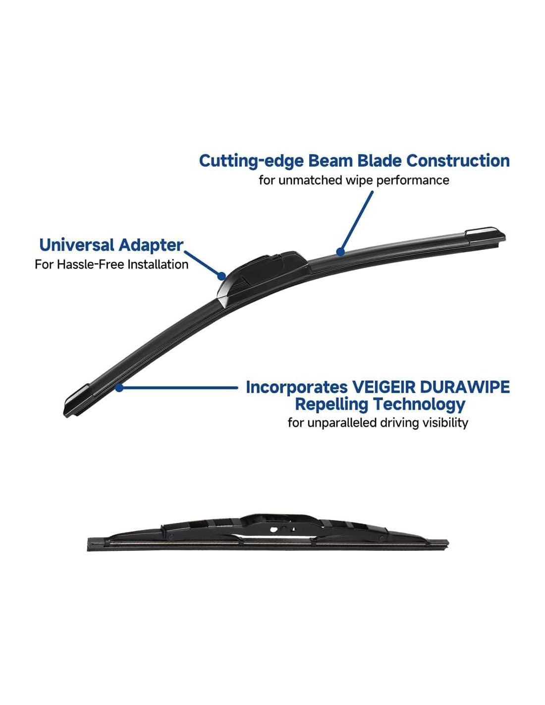 ¡Di adiós a las búsquedas interminables y problemas de compatibilidad! Nuestro conjunto empaquetado proporciona el ajuste perfecto para tus ventanas delanteras y traseras, asegurando que obtengas todo lo que necesitas en una sola compra. No más múltiples pedidos o preocupaciones de compatibilidad, este paquete te tiene cubierto. Confía en el poder de la cinta adhesiva de goma de grado 8A de VEIGEIR para mantener tus limpiaparabrisas firmemente en su lugar. Nuestra tecnología de unión avanzada asegura una conexión fuerte y resistente a vibraciones entre la cuchilla y tu parabrisas. Experimenta la confianza de un barrido suave y silencioso incluso durante conducciones a alta velocidad o en condiciones climáticas adversas. La inquebrantable búsqueda de la excelencia de VEIGEIR asegura tu seguridad y comodidad en cada milla. Diseñados para un rendimiento excepcional, estas cuchillas ofrecen visibilidad cristalina en cualquier condición climática. Los limpiaparabrisas delanteros ofrecen un barrido sin rayas para tu parabrisas, mientras que la cuchilla trasera dedicada asegura una cobertura completa para vistas sin obstrucciones detrás de ti. Mejora a VEIGEIR sin esfuerzo, gracias a nuestro proceso de instalación fácil de usar. Diseñados con simplicidad en mente, nuestras cuchillas de limpiaparabrisas se ajustan a un vehículo particular, ahorrándote tiempo y frustración. No se requieren herramientas especializadas ni conocimientos técnicos. Con VEIGEIR, el camino hacia una mejor visibilidad y comodidad al conducir es tan fácil como unos pocos pasos simples.