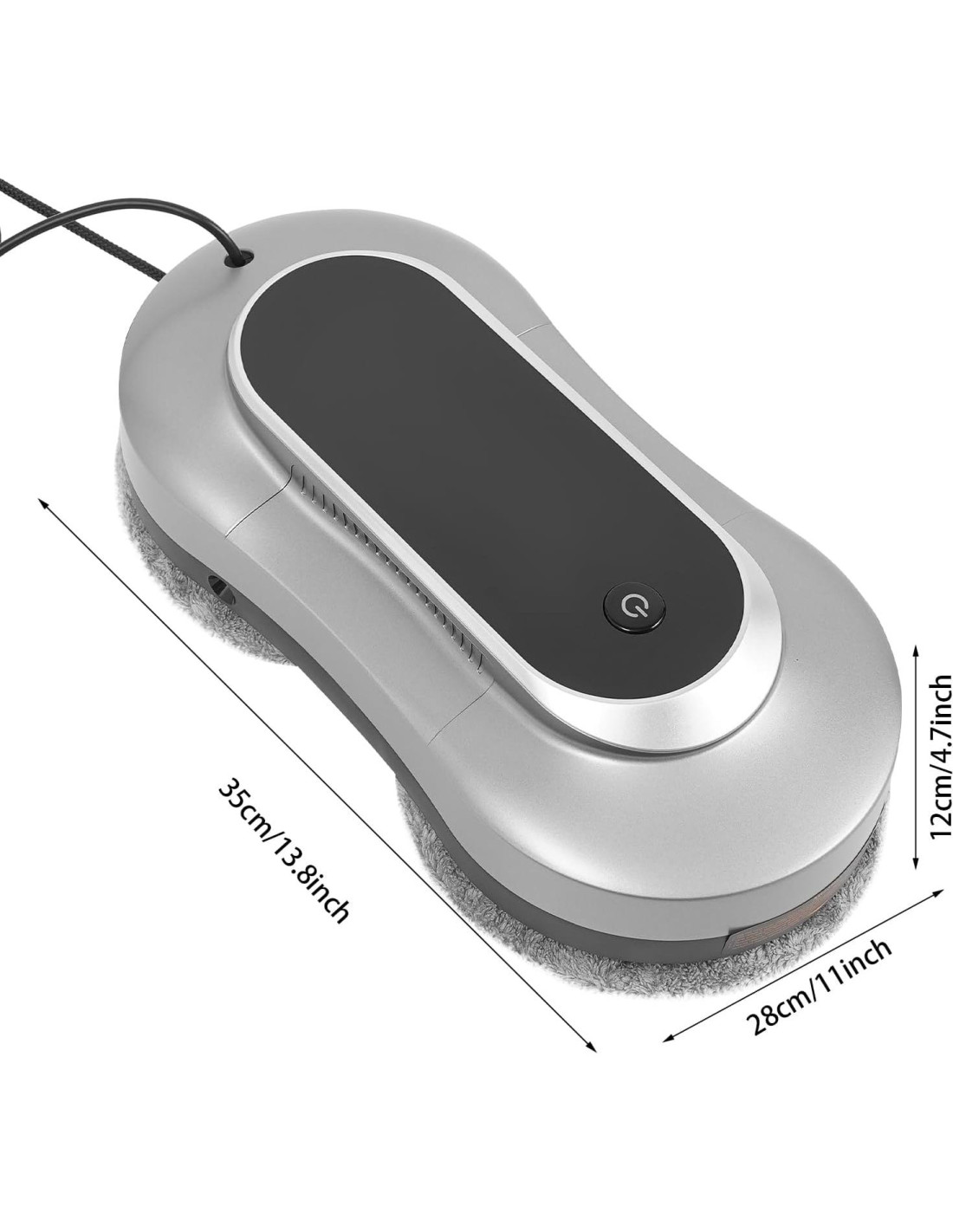 Especificaciones Color: Gris Plateado Material: PE, Fibra Ultrafina Proceso: Pintura en Spray Tipo de Motor: Motor Sin Escobillas Entrada del Adaptador: 100-240V, 50/60Hz, 2A Salida del Adaptador: 24V, 3A, 72W Tipo de Enchufe: Estándar de EE. UU. Capacidad del Tanque de Agua: 70ml (2.37oz) Eficiencia de Trabajo: 3min/m (Limpieza de 10.76ft en 3 Minutos) Potencia: 80W Velocidad: 28000rpm Potencia de Succión: 2800-3200pa Capacidad de Carga del Cable de Seguridad: 200kg (440.92lbs) Ruido: Aproximadamente 65dB Longitud del Cable de Alimentación: 6m (19.69ft) Longitud del Cable de Seguridad: 4.2m (13.78ft) Distancia del Control Remoto: 5m (16.4ft) (Señal 2G) Tipo de Batería del Control Remoto: 2* Baterías AAA (Incluidas) Requiere Montaje: No Tamaño del Producto: 35*28*12cm (13.8*11*4.7in) Tamaño del Paquete: 35*28*12cm (13.78*11.02*4.72in) Peso Bruto: 2.75kg (6.06lbs) Peso Neto: 1.16kg (2.56lbs) Paquete Incluido 1* Robot Limpiador de Ventanas 1* Botella de Agua 1* Boquilla de Rocío 1* Boquilla de Llenado de Agua 10* Paños de Limpieza 1* Control Remoto 2* Baterías AAA 1* Manual en Inglés Otros Accesorios Necesarios Notas 1. Por favor, verifique el tamaño cuidadosamente antes de ordenar. 2. Por favor, permita la ligera diferencia de color causada por la luz de disparo y el error de 1-3cm debido a la medición manual, y asegúrese de que no le importe antes de ordenar.