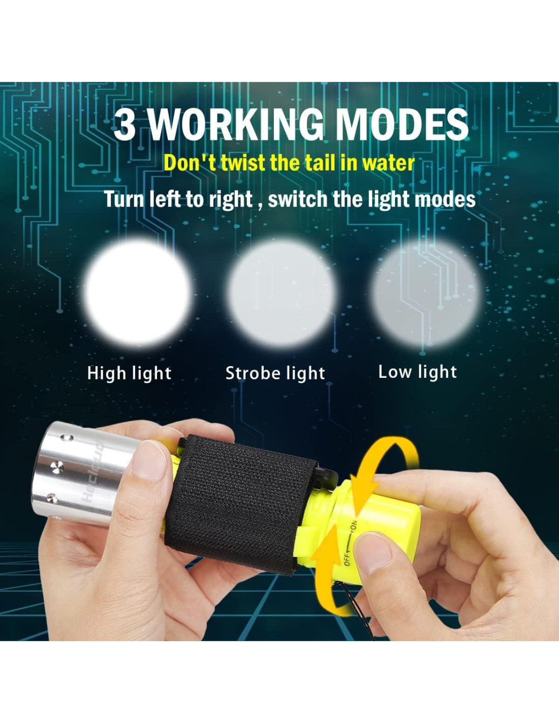 - [3 Modos de Trabajo--Uso Amplio] Alta / Baja / Estroboscópica 3 modos con potente rendimiento a prueba de agua, perfectamente para deportes submarinos, ya sea buceo, pesca, navegación, snorkel se puede aplicar