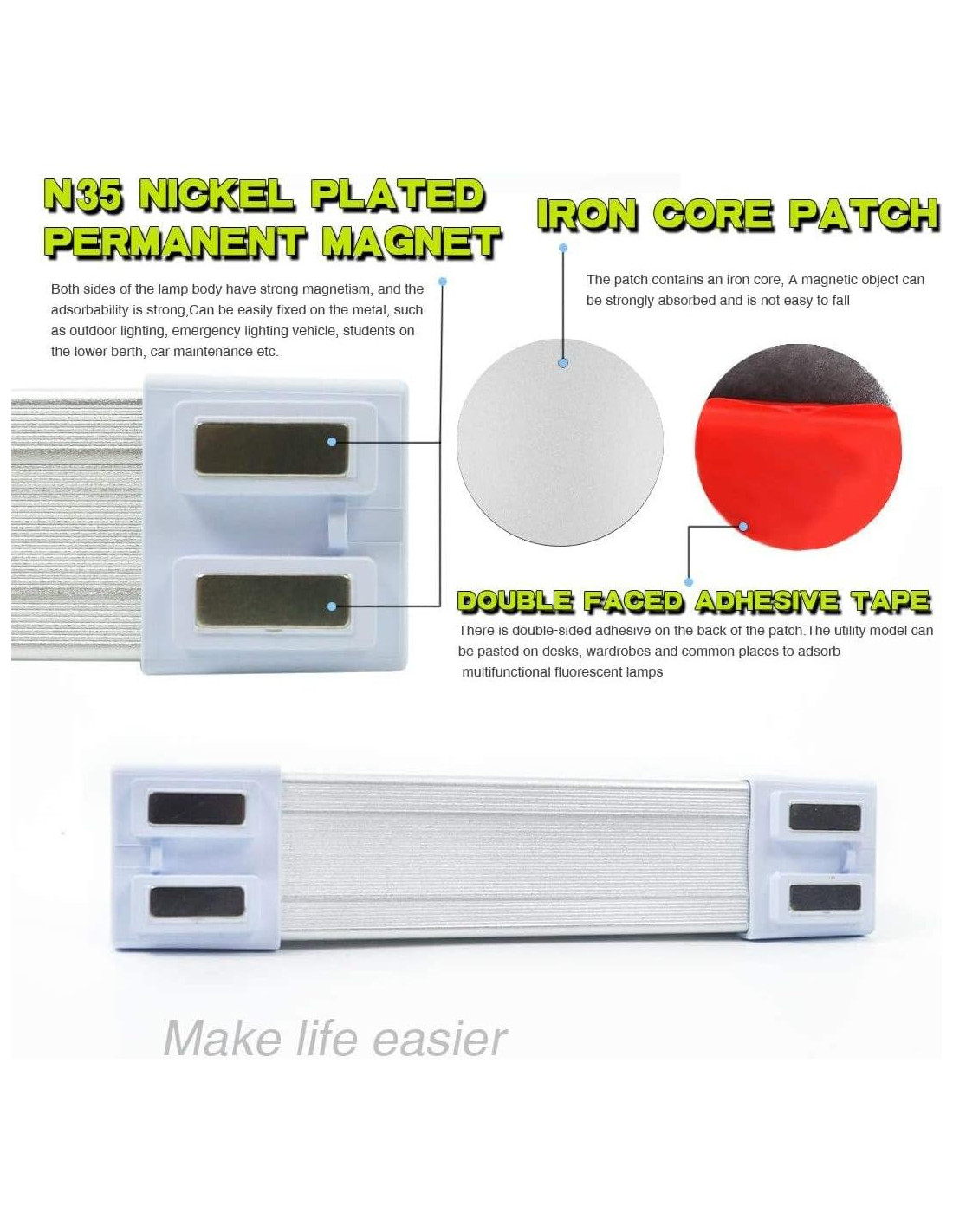 - SIN CABLES Y PORTÁTIL: La barra de luz LETOUR tiene un imán incorporado para una fácil sujeción a cualquier superficie metálica. Incluye dos discos metálicos adhesivos para montaje en armarios, closets, cocinas, coches y más, ofreciendo iluminación versátil donde sea necesario