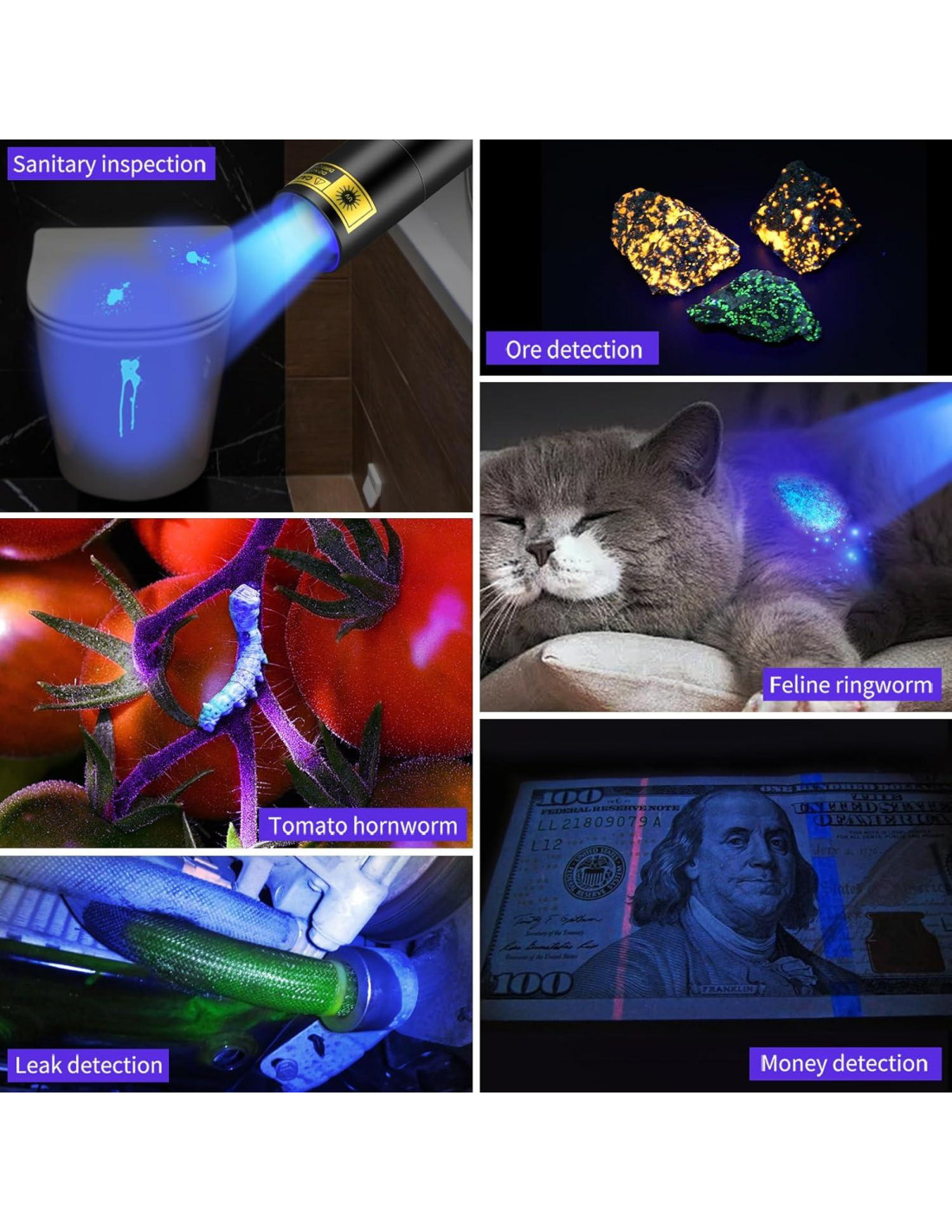 - [4] Linterna Mini Luz Negra -- Mini pero poderosa luz ultravioleta, la carcasa utiliza aleación de aluminio confiable para gran durabilidad y buen rendimiento de disipación de calor. Se puede meter fácilmente en el bolsillo, mochila, caja de herramientas, tu auto, sin miedo a perderla. Es una luz ultravioleta portátil necesaria en tu vida -- Detección de orina de mascotas, manchas en todo tipo de superficies; Curado de resina UV y vidrio de uranio; Pintura que brilla en UV; Identificación de billetes/gemas, encontrar grietas ocultas, pegamento.
