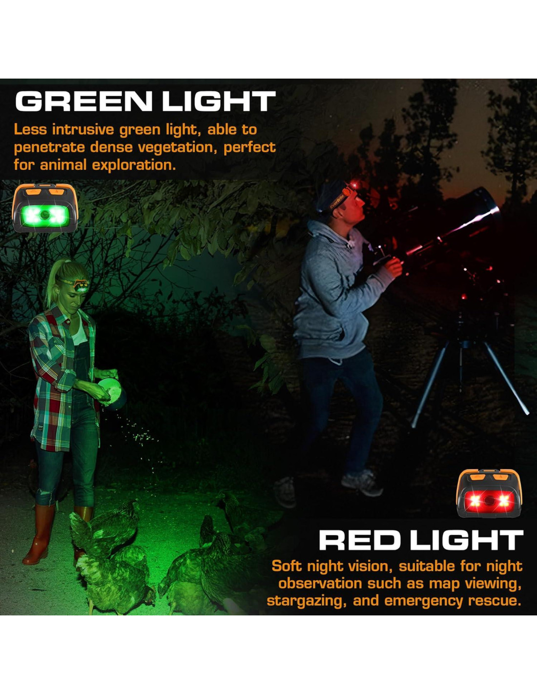 - Ideal para Actividades al Aire Libre: La linterna frontal es perfecta para uso general, como acampar, hacer senderismo, escalar, pescar y más. Además, tiene un silbato de emergencia y una luz trasera parpadeante roja en la parte trasera, diseñada específicamente para corredores nocturnos.
