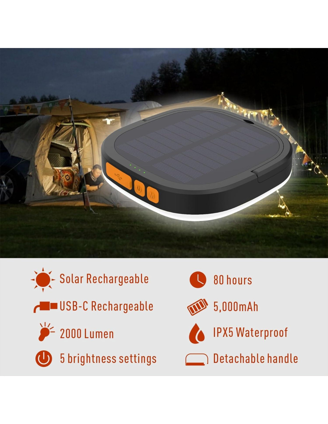 - [2000 lúmenes/6H+ de iluminación continua] El brillo más alto de esta luz LED es de 2000 lúmenes, el brillo más alto puede tener un tiempo de iluminación continua de más de 6h, el brillo más bajo puede tener un tiempo de iluminación continua de más de 50h, para proporcionar un largo tiempo de iluminación para tus actividades al aire libre.