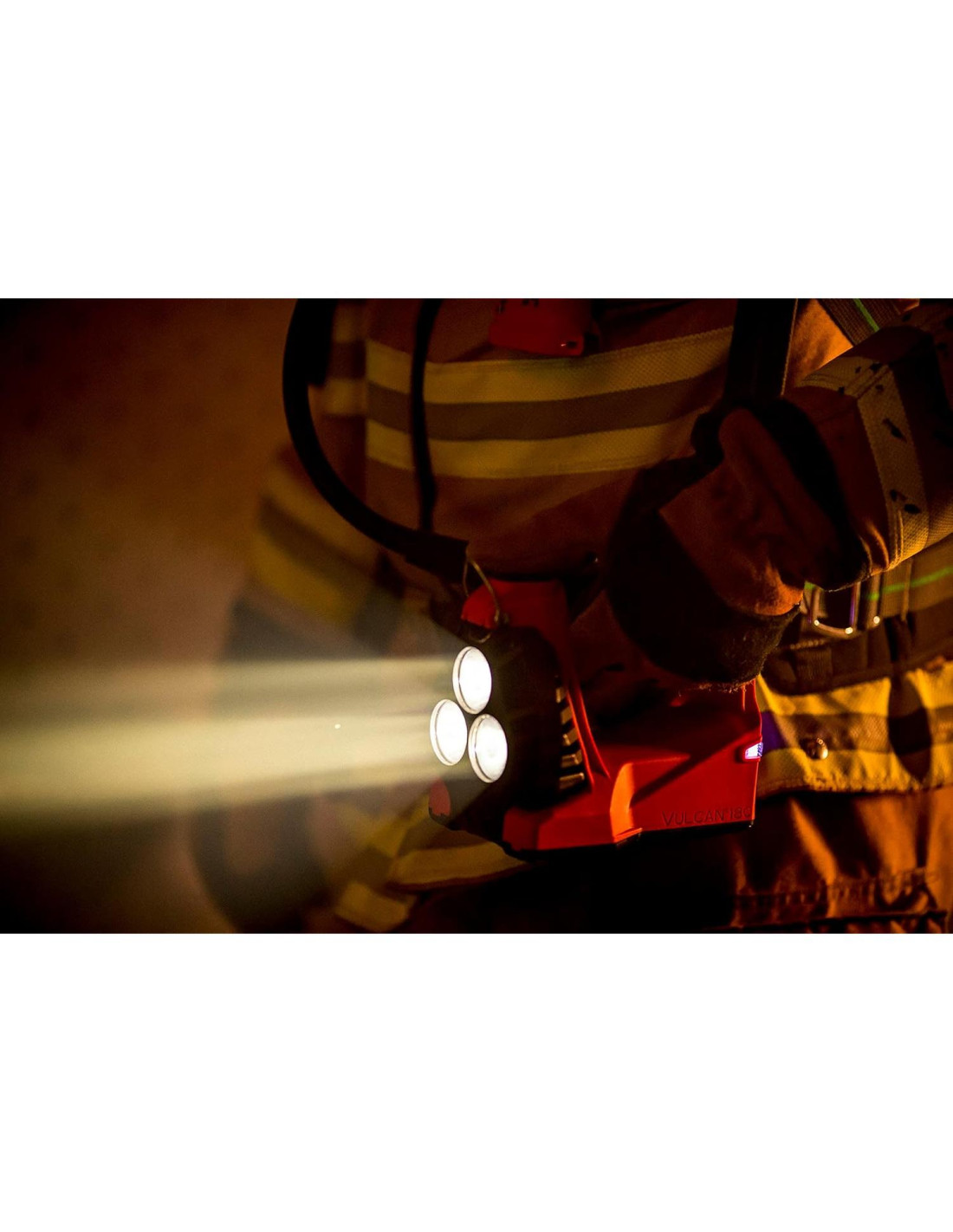La Linterna Vulcan de Streamlight cuenta con una potente bombilla halógena ultra brillante, batería de plomo-ácido sin mantenimiento, lente de policarbonato irrompible con recubrimiento resistente a los arañazos. Su tamaño compacto y construcción impermeable duradera, combinados con un potente haz y capacidad de recarga, hacen de la Linterna Naranja Vulcan de Streamlight ideal para los trabajos más exigentes. Incluye un soporte de carga de cable directo de 12 voltios DC y una correa para el hombro junto con un cargador AC para carga en el hogar. Pesa 1.5 kilogramos (3.3 libras) y sus dimensiones son 19.05 cm (7 1/2 pulgadas) de largo por 12.7 cm (5 pulgadas) de ancho por 14.61 cm (5 3/4 pulgadas) de alto. Tiene una carcasa de ABS termoplástico de alto impacto e impermeable que cuenta con un parachoques de goma y un mango con agarre acolchado. El foco de 8 vatios proporciona hasta 80,000 potencia de candela pico (lúmenes de bombilla: 150 típicos). Tiene una batería de plomo-ácido sellada de 4.5Ah sin mantenimiento que funciona hasta 3.25 horas por carga y es recargable hasta 500 veces. Los LED rojos y verdes dan retroalimentación sobre el estado de carga. Cada Linterna Vulcan de Streamlight está serializada para identificación positiva. Estas linternas son ideales para mantenimiento en campo, inspección de sitios de construcción y equipos remotos. Sistema estándar - Incluye correa de liberación rápida, soporte de carga y cargadores AC y DC.