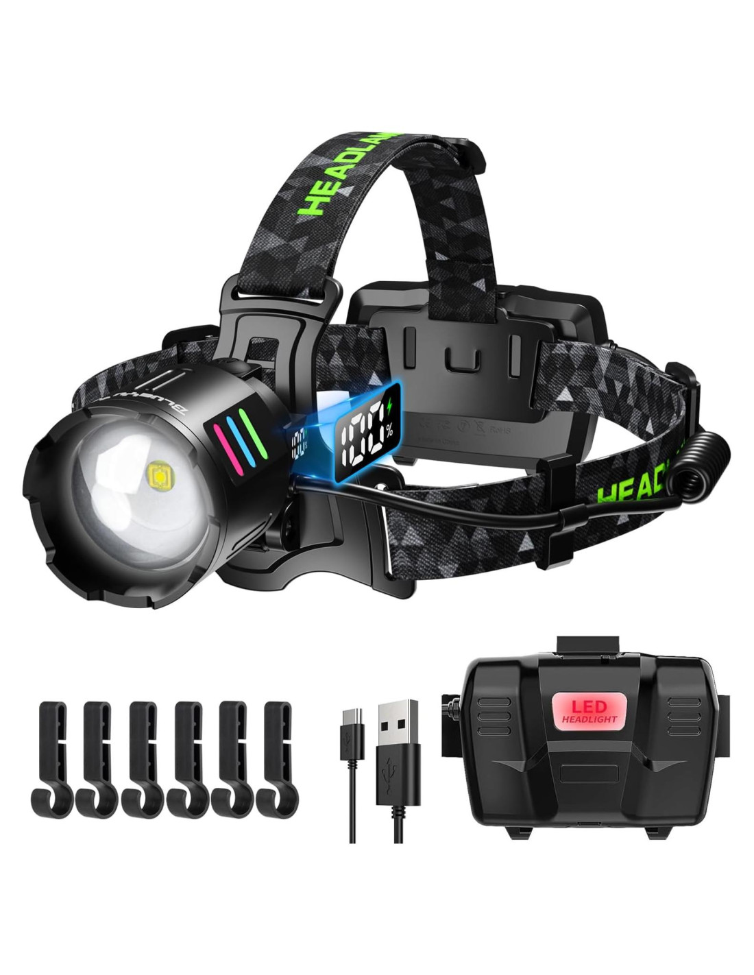 - [Ajustable a 90 & Con Zoom] Las Lámparas Frontales tienen función ajustable a 90, que puede ajustar el ángulo de luz según las necesidades reales, ampliando enormemente el rango de iluminación; la linterna frontal también admite función de zoom, que puede realizar fácilmente el ajuste del tamaño y distancia del punto, que es el compañero ideal para aventuras al aire libre y trabajo nocturno.