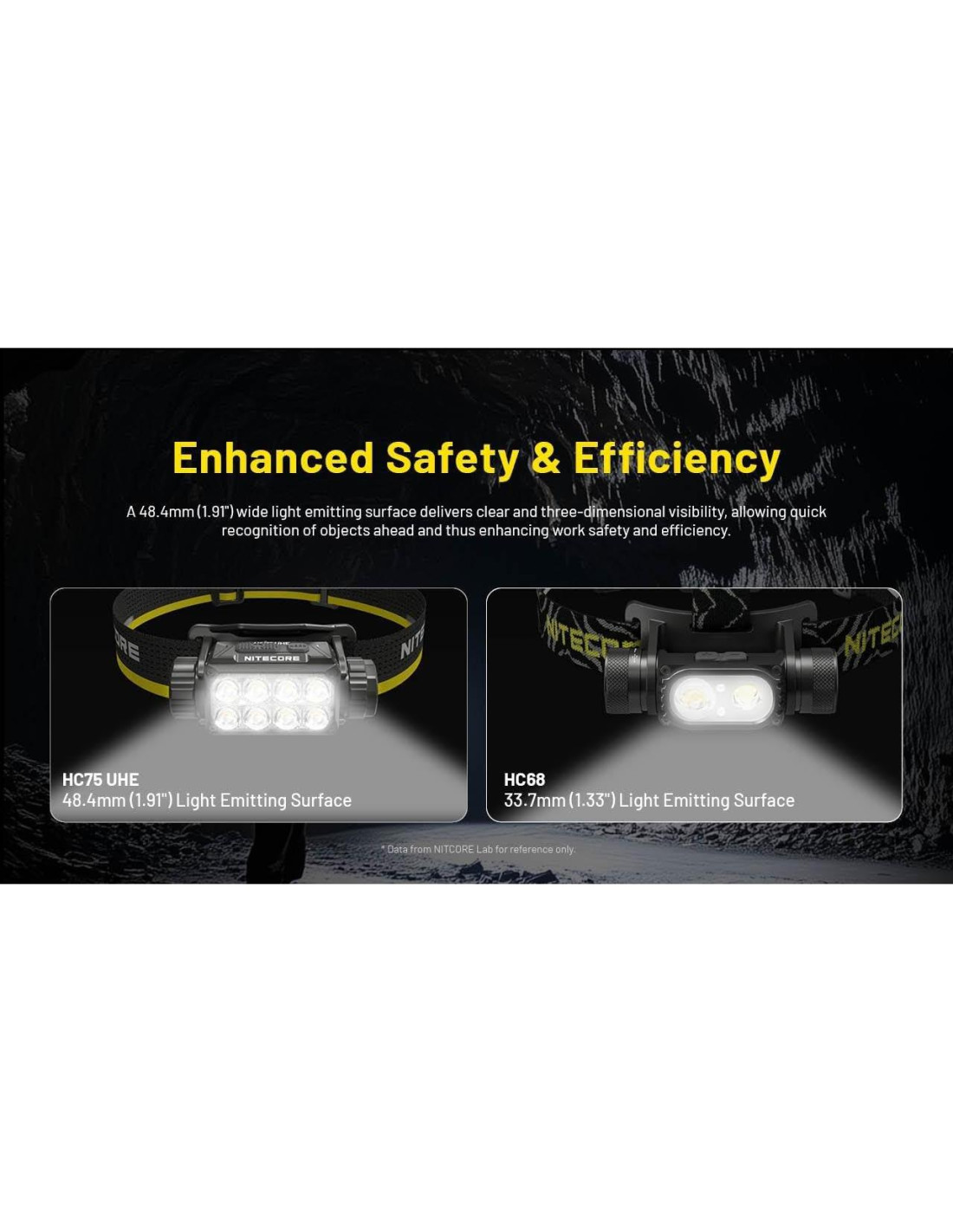 - Nitecore HC75 UHE Linterna Frontal Recargable E-Focus Spotlight Floodlight 192m Haz -3000 Lúmenes (Actualización de HC68) con 2x Batería EXTRA y Cable de Carga Eco Sensa USB-C