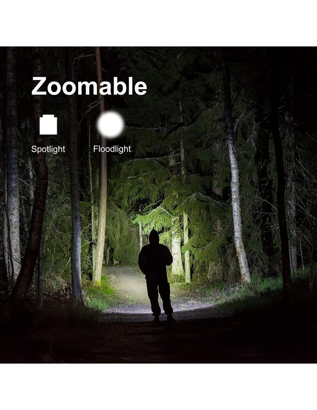 - Zoomable y 3 modos de luz - Tres configuraciones útiles, alta luminosidad; baja luminosidad; estroboscópico (SOS) con enfoque ajustable para corto o largo alcance, como un foco que lanza un haz brillante a 182.88 metros adelante, o como una luz de inundación compacta y pequeña que ilumina a las personas