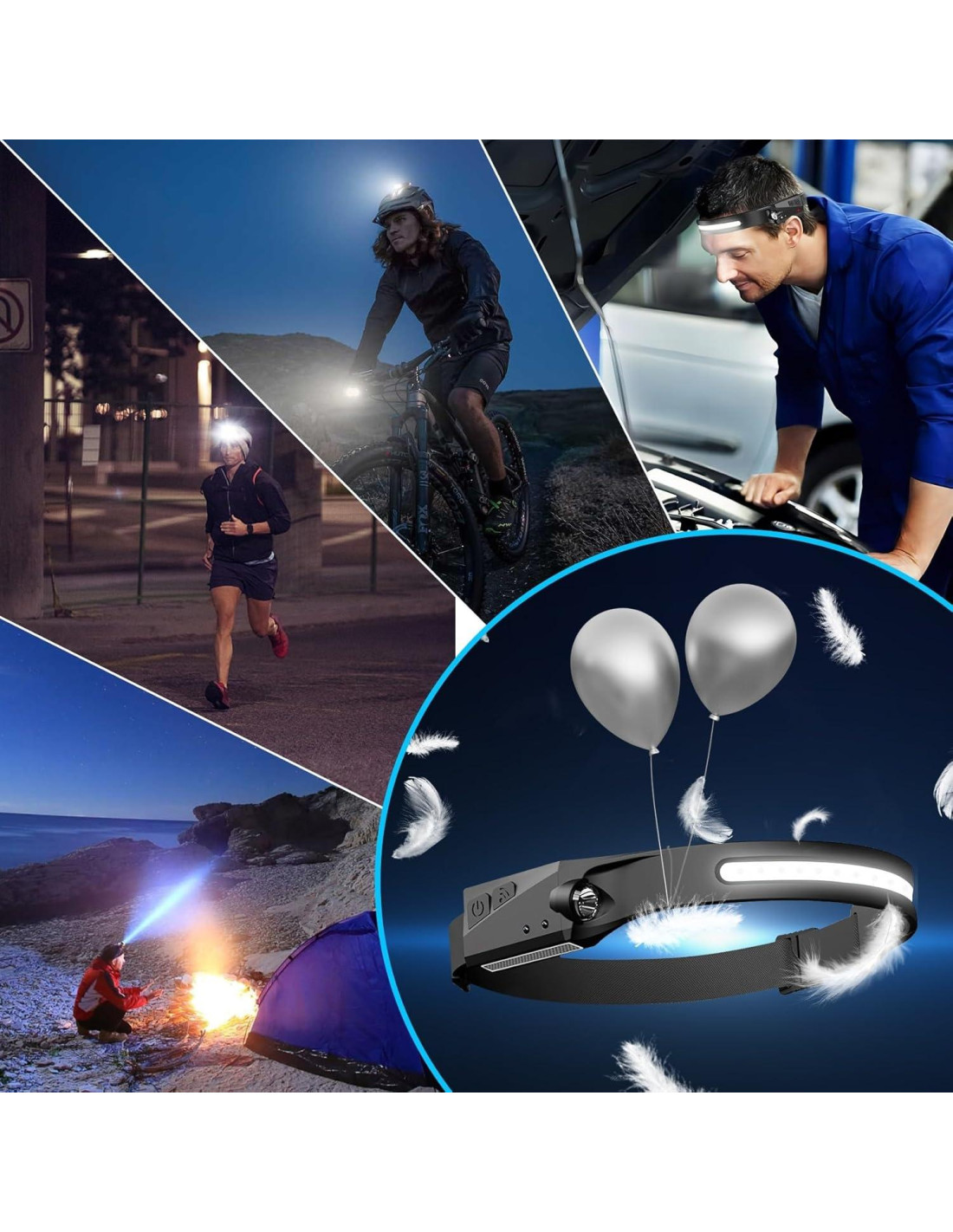 - Modo de Linterna Frontal con Sensor de Movimiento: Los Accesorios de Camping de Linterna LED están equipados con los últimos sensores inteligentes. Incluso si llevas guantes, mientras la distancia del dispositivo esté dentro de 10 cm, detecta tus movimientos de manera sensible. Es más conveniente de usar y también evita ensuciar la linterna frontal con tus manos.