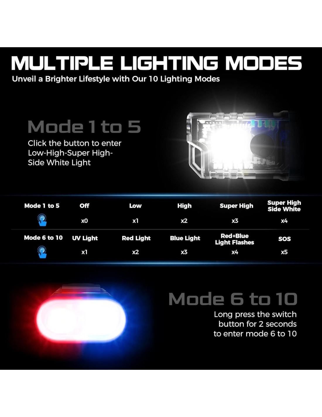 - Múltiples Modos de Iluminación: Proporciona hasta 10 modos de iluminación diferentes, atendiendo a una amplia gama de necesidades en su vida diaria. Ya sea que necesite un haz brillante para actividades al aire libre, una luz más suave para leer, o un modo intermitente para emergencias, esta linterna lo tiene cubierto, iluminando cada aspecto de su vida