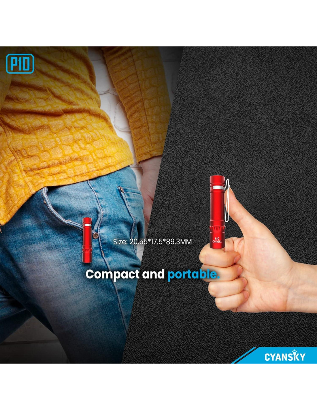 - Uso Versátil - La CYANSKY P10 es perfecta para llevar a diario y una amplia gama de aplicaciones. Ya sea que estés acampando, haciendo senderismo o simplemente necesites una linterna confiable para el uso diario, la CYANSKY P10 seguramente impresionará.