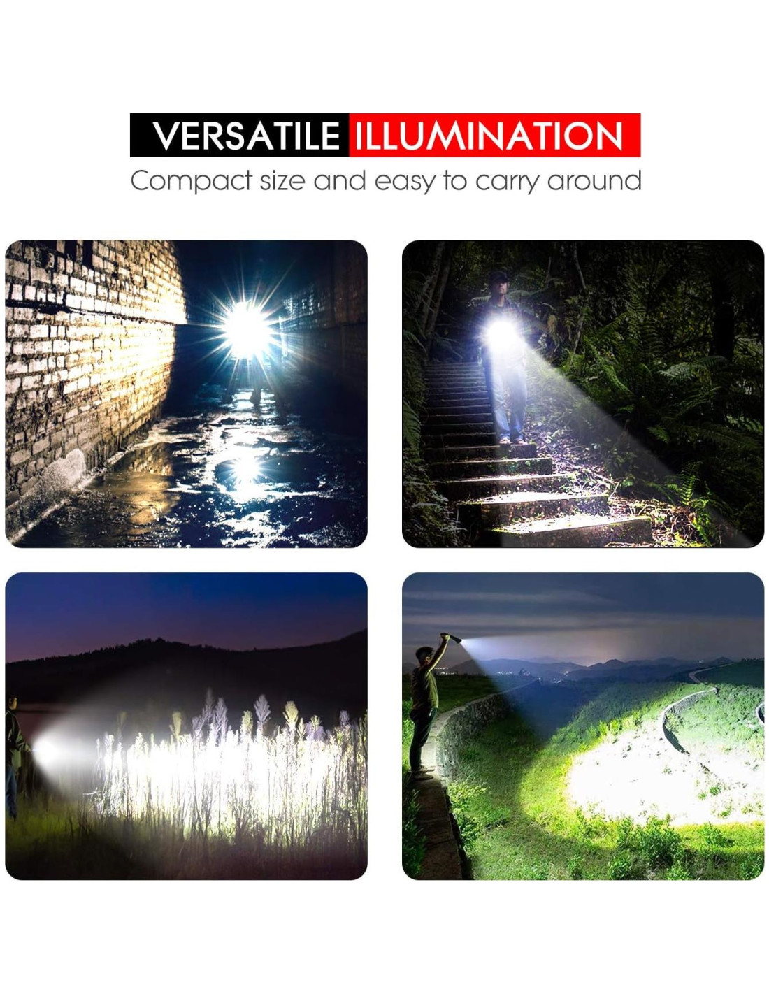 - 3 MODOS Y ZOOMABLE Simplemente gira esta linterna hacia adentro o hacia afuera para un foco o como luz de inundación; cuenta con solo 3 modos de luz (Alto / Bajo / Estroboscópico) que reducen efectivamente el problema de cambiar 5 modos. Todo para la mejor experiencia de uso