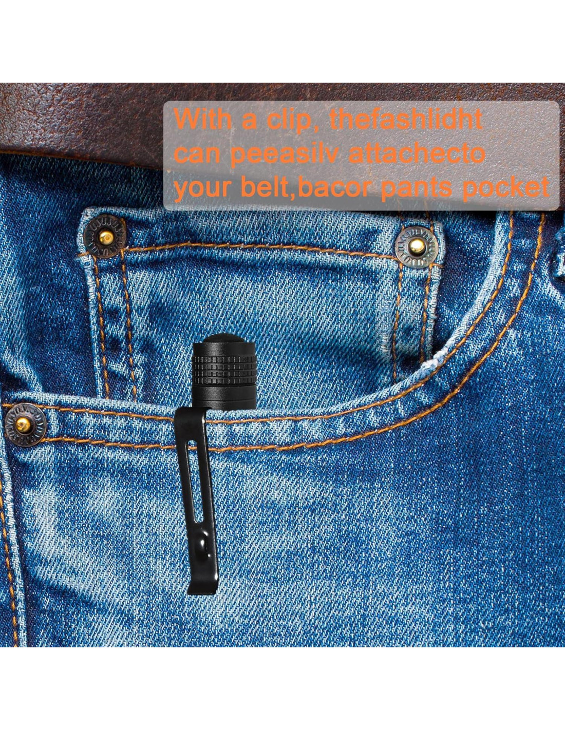 - PORTÁTIL: Con un clip, la linterna de bolígrafo puede usarse como luz de tapa para tu conveniencia, puedes llevar esta mini linterna contigo a donde vayas. El clip removible se puede adjuntar fácilmente a tu cinturón, bolsa, carpeta, camisa o bolsillo de pantalón