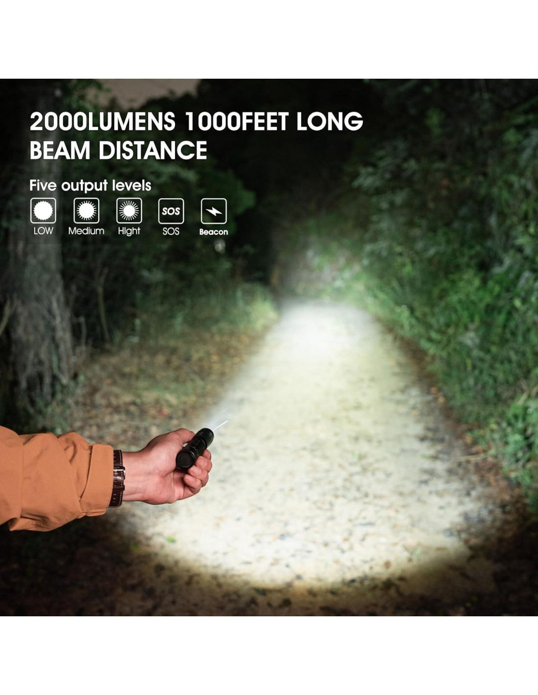 - [5 Modos de Iluminación] : Con 5 modos de iluminación (Alto/Medio/Bajo/Estroboscópico/SOS), la linterna de bolsillo proporciona flexibilidad para cualquier situación. El diseño del interruptor trasero permite un fácil cambio de modo y tiene una función de memoria para que no tengas que ciclar a través de los modos cada vez que la enciendes. La luz de inundación de 1000 pies ilumina fácilmente el camino por la noche.