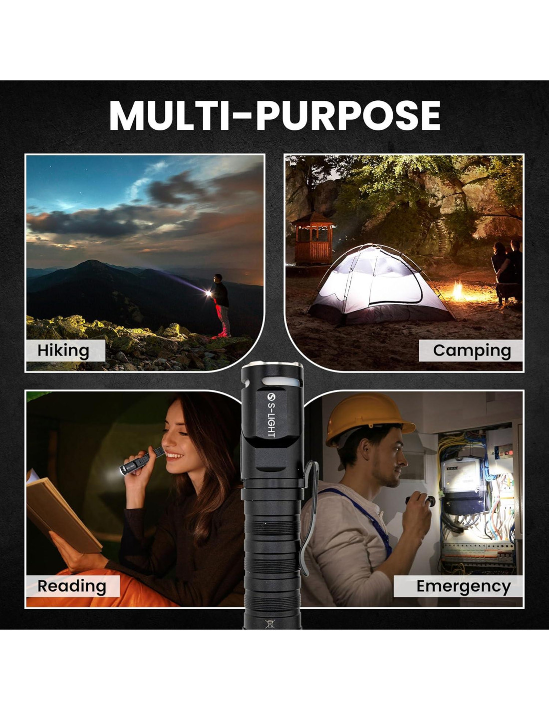 - Recargable y eficiente en energía: Di adiós a las desechables con esta linterna recargable. La capacidad de carga USB asegura un rendimiento duradero, convirtiéndola en una luz de camping, luz estroboscópica o compañera diaria confiable.