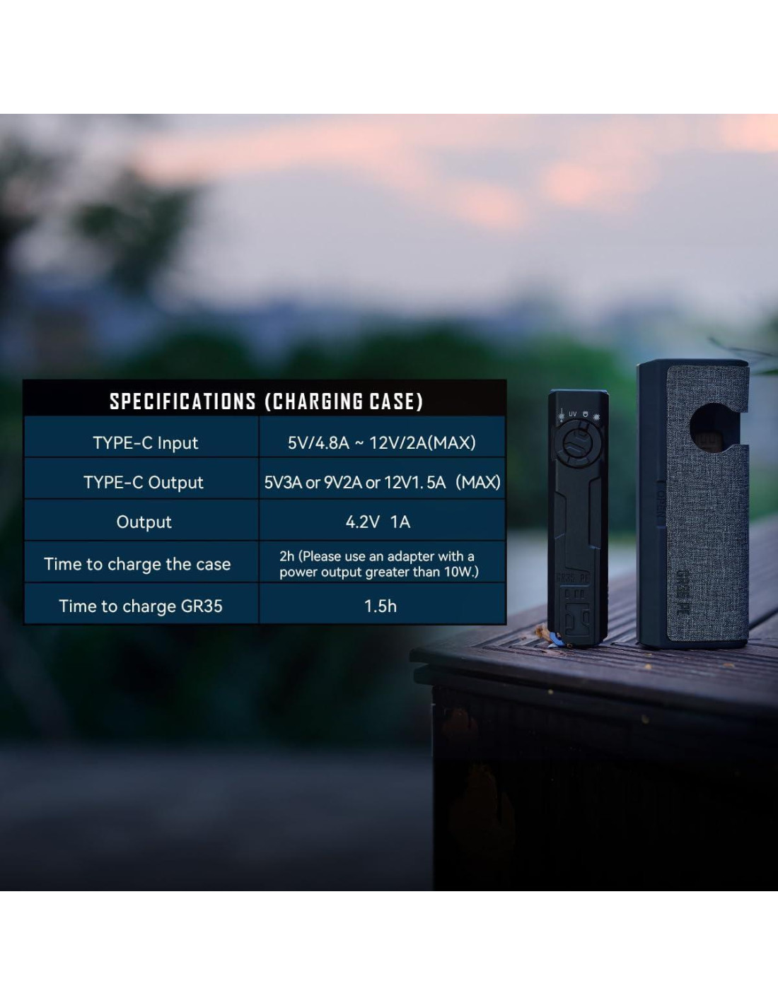 Ya sea que estés caminando, montando en bicicleta, trabajando en condiciones de poca luz o preparándote para emergencias, esta linterna de alto rendimiento es una herramienta imprescindible. Esta linterna plana compacta ofrece impresionantes 2800 lúmenes de potente iluminación, perfecta para aventuras al aire libre, emergencias o uso diario. El cable de carga Tipo-C incluido se conecta fácilmente a la parte trasera de la linterna. Su cuerpo del tamaño de un bolsillo cabe en cualquier lugar, perfecto para EDC (uso diario), camping, emergencias o uso táctico. Esta linterna unibody ultra delgada ofrece una increíble luminosidad de 2800 lúmenes en un diseño del tamaño de un bolsillo, con batería recargable incorporada. Presiona dos veces el botón lateral para bloquear o desbloquear la linterna mientras no la uses. ¿Cómo operar el GR35? Cambia las fuentes de luz. Gira el dial de izquierda a derecha, las fuentes de luz cambiarán como sigue: Luz láser - luz UV - luz blanca - luz roja, y luces azules parpadeando. ¿Por qué mi GR35 no se enciende al sacarlo de la caja? Cuando recibas la linterna, presiona dos veces el botón lateral para desbloquear la linterna, por favor, bloquéala mientras no la uses. ¿Cuáles son las principales características del GR35? Tamaño pequeño pero potente, linterna EDC de 2800 lúmenes. Hay 4 fuentes de luz adecuadas para muchas situaciones. Carga rápida Tipo-C.