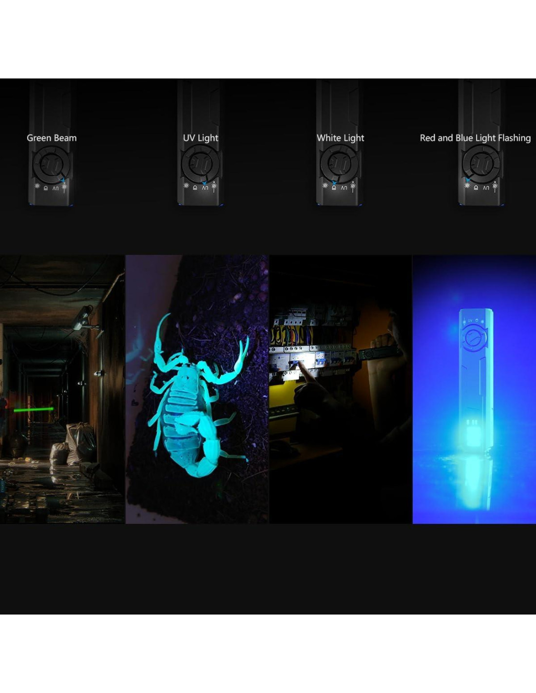 - Funcionalidad Cuatro en Uno - La Imalent GR35 es una linterna de ultra alto rendimiento con una salida de 2800 lúmenes y un alcance máximo de haz de 426 metros. Combina luz blanca, UV, luz roja-azul parpadeante y haz verde en una sola linterna, ofreciendo versatilidad para una amplia gama de aplicaciones.