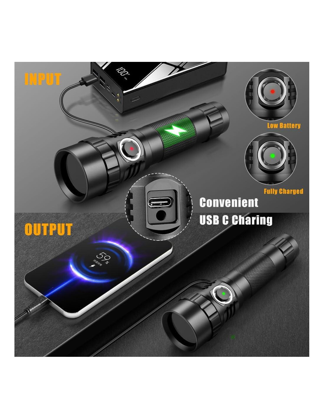 - [Luz Negra Recargable por USB] El diseño de enchufar y recargar hace que las linternas de mano sean más prácticas en aventuras al aire libre, rescates de emergencia y otros escenarios; solo necesita enchufar el cable de carga cuando la batería está baja para reponer rápidamente la energía, lo que ahorra mucho tiempo. En comparación con las baterías desechables tradicionales, las baterías recargables se pueden usar repetidamente, reduciendo la contaminación ambiental de las baterías usadas. Hoy en día, cuando se aboga por la vida ecológica, sin duda está más en línea con el concepto de protección ambiental.