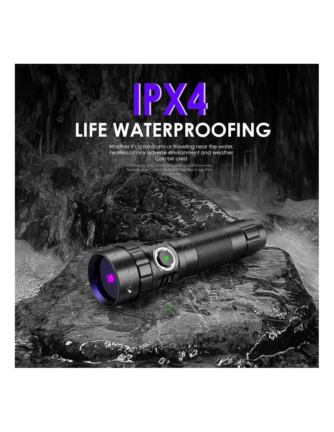 - [Lente de Filtro UV Negra] Las lentes de filtrado UV negro proporcionadas con las linternas UV ofrecen varias ventajas significativas. Pueden filtrar eficazmente la mayor parte de la luz visible para asegurar que los usuarios tengan una experiencia de observación clara; en segundo lugar, pueden aumentar significativamente la intensidad de los rayos ultravioletas, lo que significa una mayor penetración y un efecto de esterilización más eficiente. Además, la lente negra está hecha de material resistente al desgaste y a los impactos, lo que puede bloquear eficazmente arañazos y suciedad, manteniendo la apariencia y el rendimiento de la linterna.