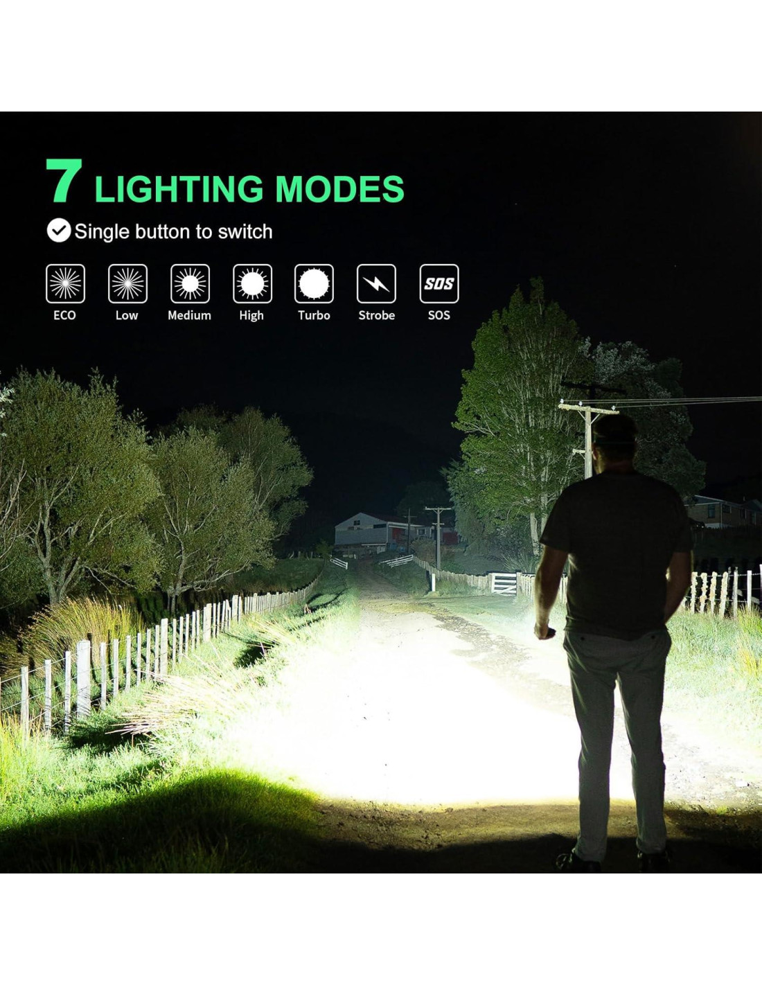 - LINTERNAS MUY BRILLANTES: La linterna recargable WUBEN X1 está equipada con 3 LEDs 70.2 6000K, que pueden alcanzar hasta 12000 lúmenes instantáneamente en un cuerpo pequeño, con 7 modos, programable, y el alcance es un foco de inundación de 303 metros.