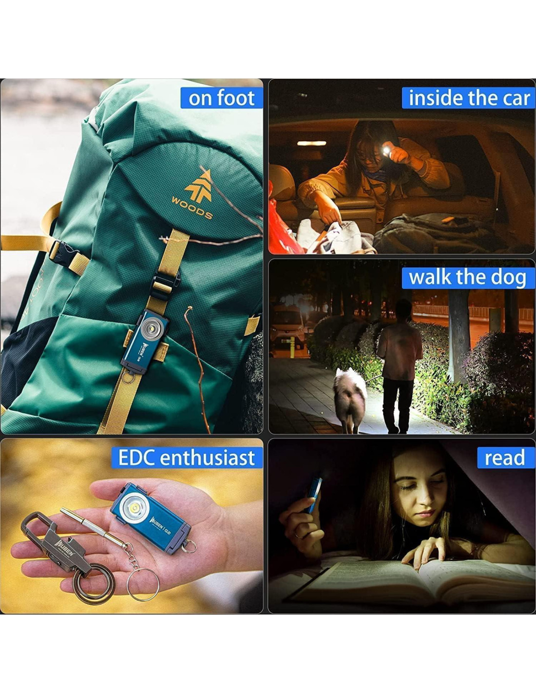 - LINTERNAS EDC PERFECTAS: La pequeña linterna tiene ranuras para clip en ambos lados para fácil desmontaje y montaje del clip. Es conveniente que la luz de llavero se fije en la tapa, correa, collar, etc. Es lo suficientemente brillante y una experiencia de iluminación increíblemente conveniente para mochilear, pasear perros y uso diario, cumple con tu objetivo diario fácilmente