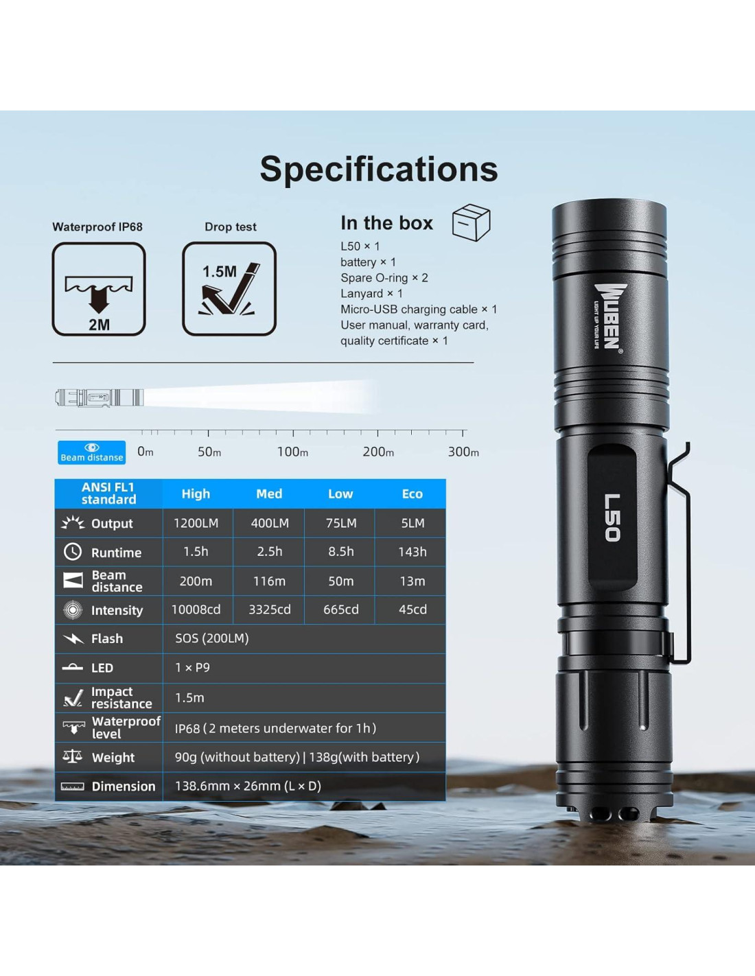 - Satisfacción Garantizada: Con tu compra de la linterna de llavero WUBEN L50, recibirás un cable de carga USB, anillos a prueba de agua, una correa de mano y un manual multilingüe. Además, WUBEN ofrece una garantía de satisfacción del 100%, con reparaciones gratuitas disponibles dentro de 1 año, brindándote tranquilidad con tu compra.