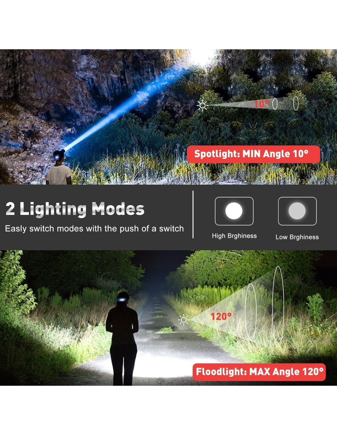 - [Linterna Frontal Ultra Brillante] Nuestras linternas frontales ultra brillantes utilizan chips avanzados con una salida máxima que te proporciona un rango de brillo de hasta 1000 metros.