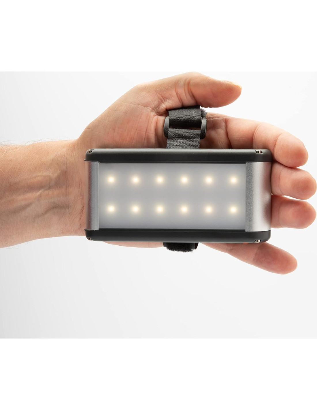 - Asegúralo a tu mochila, tienda o brazo con la correa de gancho y bucle o cuélgalo con los imanes