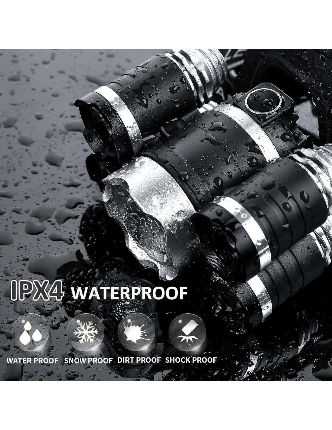 - Impermeable para uso al aire libre: Al usar la linterna frontal al aire libre, no tienes que preocuparte por la lluvia inesperada. La alta calidad, el cableado impermeable y a prueba de fugas dentro de la linterna asegura que tus luces permanezcan encendidas, incluso si la linterna se empapa por la lluvia.