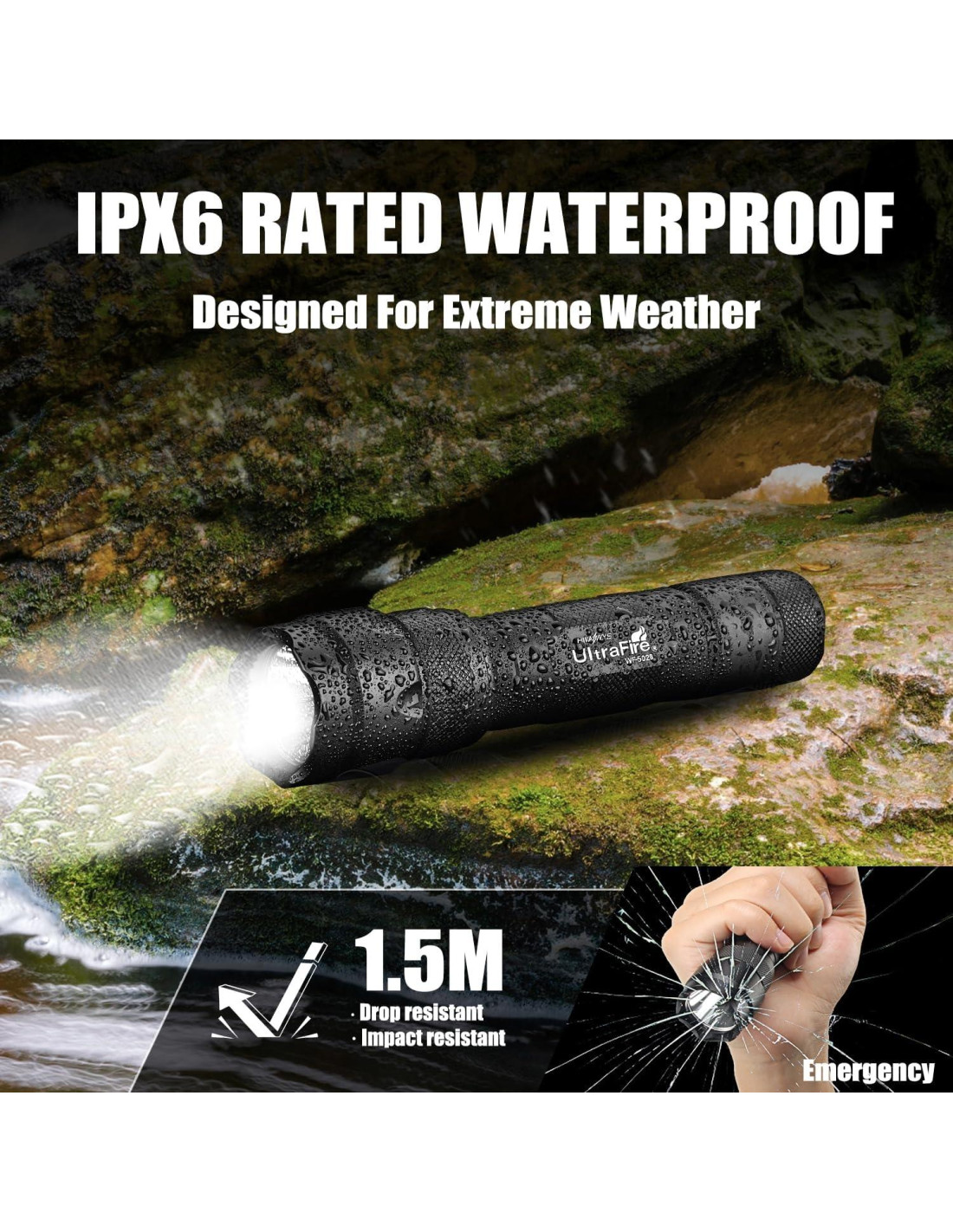- Ultra-brillante - La linterna táctica UltraFire WF-502B tiene una alta luminosidad de 1000 lúmenes y una distancia de haz de 656 pies (200 metros). Su tamaño cómodo es ideal para uso en casa, actividades al aire libre, senderismo, pesca nocturna y camping.