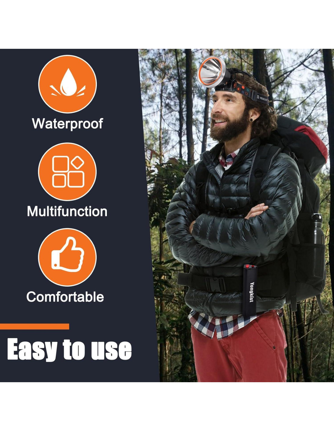 - [Super Brillante y de Largo Alcance] Equipado con bombillas LED de alto lumen de Yongkist, esta linterna frontal ofrece una iluminación ultra brillante con una vida útil de hasta 100,000 horas. La distancia del haz de hasta 2600 pies (800 metros) asegura una visión clara incluso en total oscuridad.