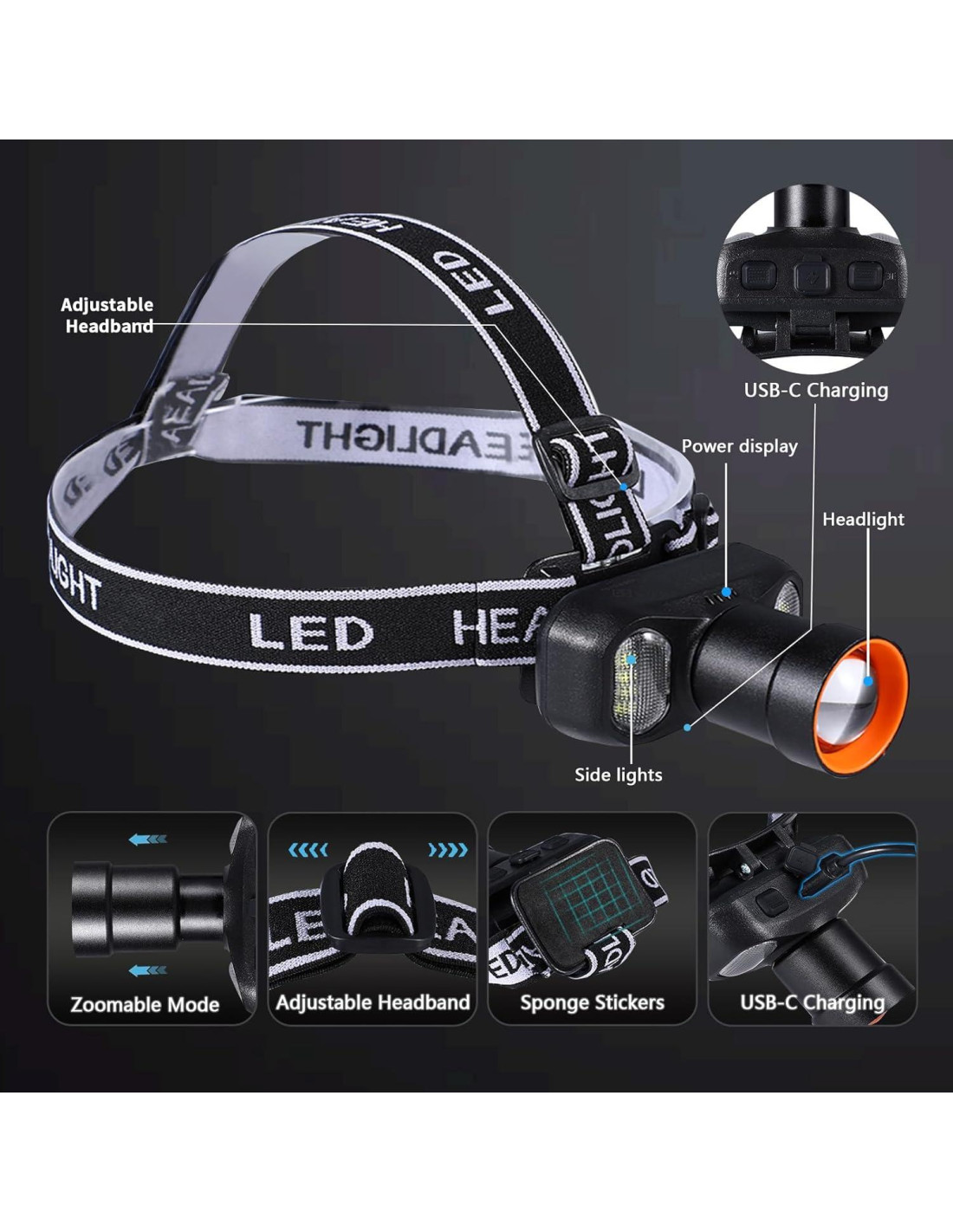 - Zoomable y Ajustable Estira la lente para transformar de un foco concentrado (alcance de 200m para navegación en senderos) a una luz de inundación amplia (iluminando todo el campamento o espacios de trabajo). Las linternas se pueden ajustar en 90, fijadas firmemente para evitar sacudidas y deslizamientos durante el senderismo. La linterna frontal utiliza una banda elástica a prueba de sudor que se puede ajustar fácilmente en longitud para adaptarse perfectamente al tamaño de tu cabeza y satisfacer las necesidades de adultos y niños.