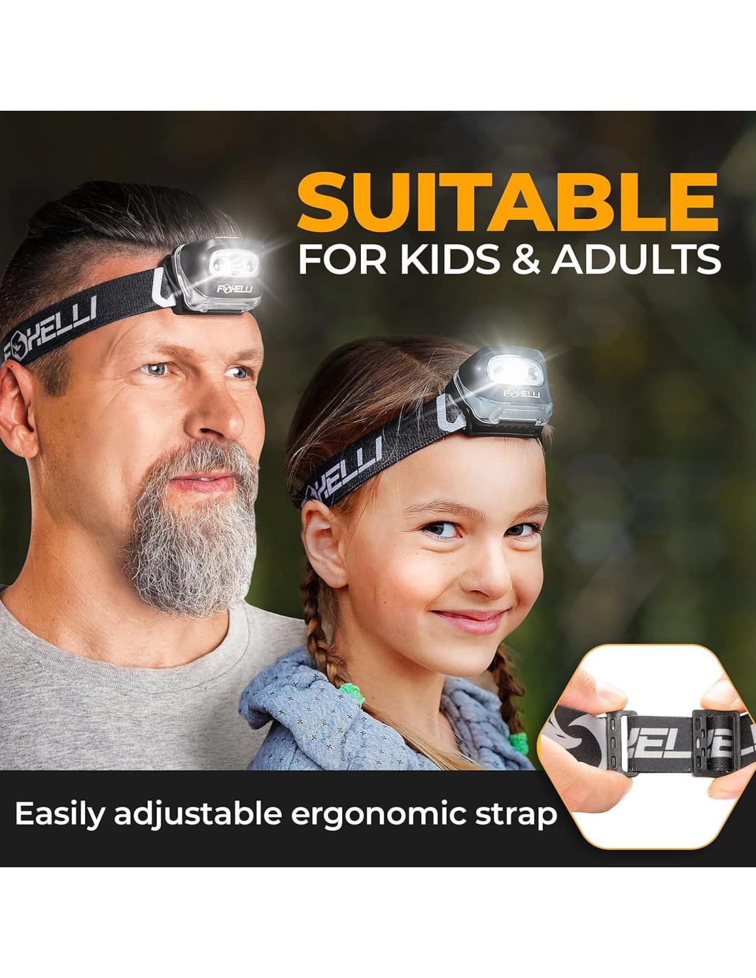 - Estilo: Paquete de 2 Linternas Frontal LED Foxelli - Amarillo y Bosque