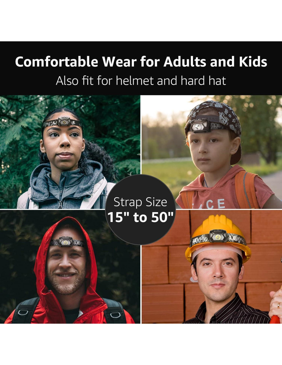 - Cinta Ajustable, Cómoda de Usar - Con su cinta removible, lavable y elástica, esta linterna es cómoda para que tanto adultos como niños la usen, y puede incluso ajustarse a cascos o cascos de seguridad. Pesando solo 1.94oz (55g) (3.5oz (99g) con baterías), es la linterna LED perfecta para corredores de larga distancia y aventureros al aire libre.